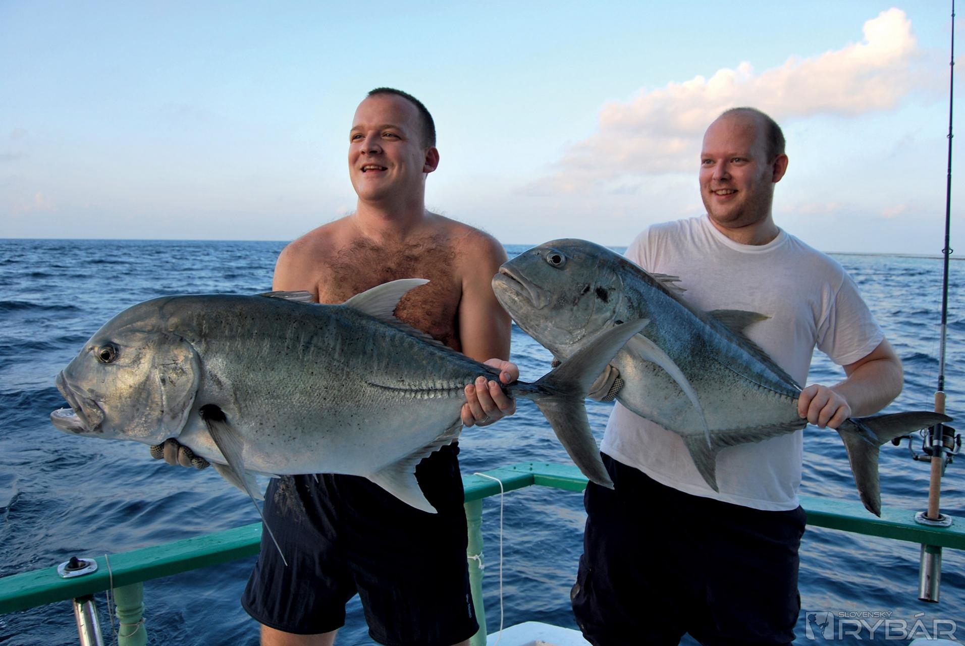 O chvíľu sa tam stretávajú štyria spotení rybári a každý s nenormálne zohnutým prútom. Prvou rybou na palube je môj štrnásťkilový kranas a hneď za ním, čuduj sa svete, vyťahuje Paľo metrového žraloka bielocípeho. Je to prvý žralok chytený na prívlač. Kým sme naše úlovky vyfotili, ryba otca Rasťa sa dostala tak na dvadsať metrov k lodi a ďalej s ňou nejde pohnúť ani o piaď. Trvá to hádam toľko, čo celý diel televízneho Paneláku aj s reklamami, kým nám už dehydrovaný a vysilený Rasťo ukazuje pri hladine svoju rybu. „Bože, to je kolos,“ konštatujem. Digitálna váha iba pritakáva a ukazuje magických 25,25 kilogramu. Posledný zdolaný Peťov kranas mal pätnásť a pol kilogramu, to len aby sa nezabudlo.