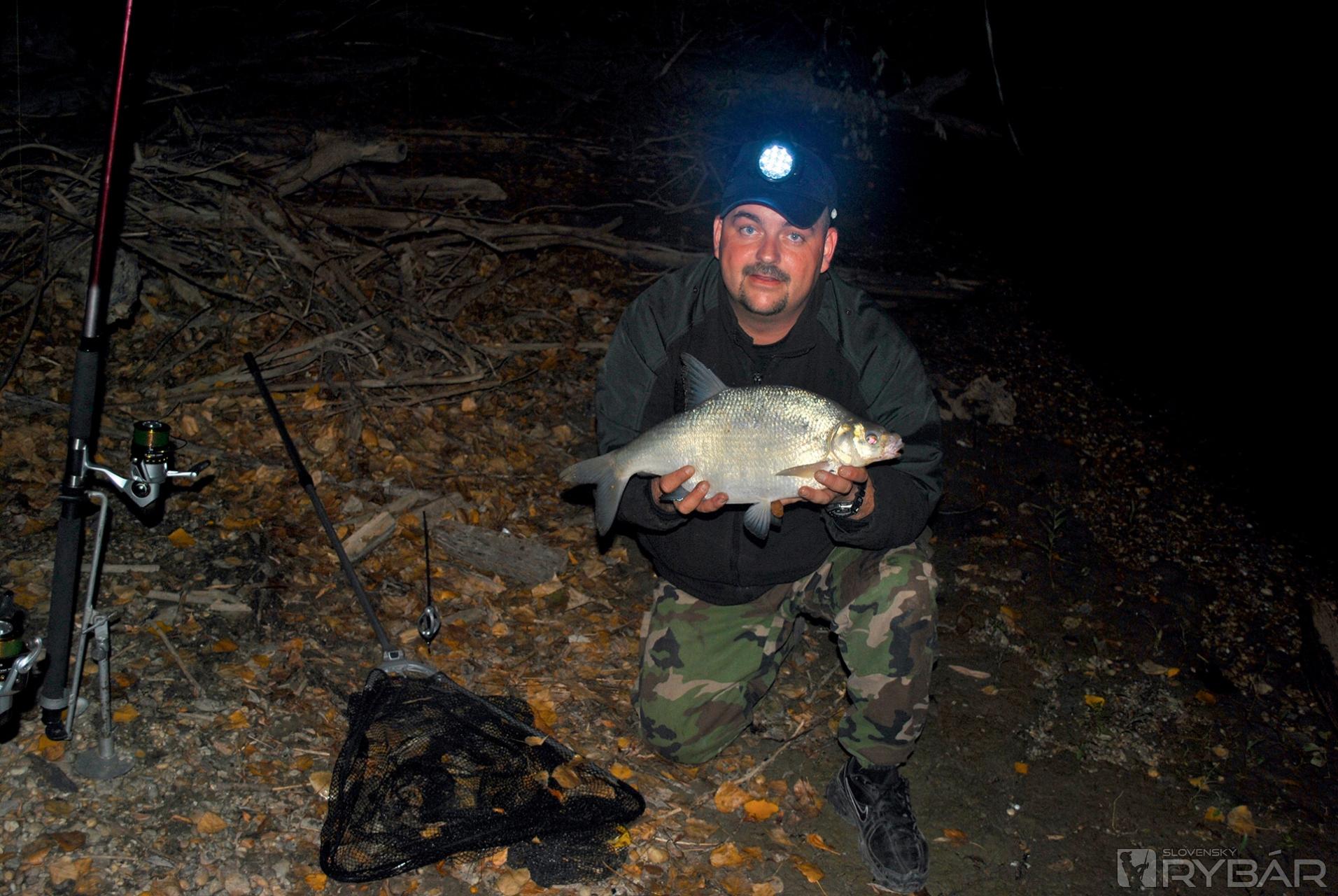 Čo čert nechcel /alebo chcel/ akurát v tomto momente /22. h/ sa rázne ozvala rolnička na mojom ľavom prúte. Vyštartoval som z kresla, zasekol a po prvom kontakte s rybou pocítil neskutočný odpor. Po krátkom zdolávaní sa na brehu ocitol ďalší pleskáč, tentoraz s dĺžkou 52 cm. Miloš, ktorý mi ho podoberal, mu aj vytiahol háčik z papuľky a neveril vlastným očiam – zabral práve na halibut peletu. Takže o tému na ďalšie sedenie pri ohni bolo postarané... Poviem vám, zdolávať proti tomuto prúdu čo i len dvojkilovú rybu + 150 g montáž... Ručička môjho adrenalínomeru sa točila okolo svojej osi. Povedal som si – paráda, opäť som niekomu potvrdil, že experimentovať sa oplatí.