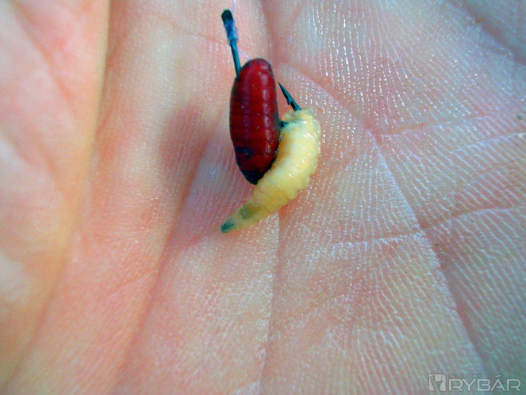 Už sme spomenuli veľkosť háčikov, ale ešte sme nevraveli o tom, čo na ne zavesiť. Najčastejšou nástrahou pri love na feeder sú kostné červy a vhodné sú aj v tomto období. Priznám sa, že sú pre mňa najdostupnejšou nástrahou a používam ich počas celého roka. Na háčik vo veľkosti 14 najčastejšie nastražím dva, pri väčšej aktivite ryby tri kostniaky. Zväčša ich nastražím tak, že jeden je navlečený na ramienku a druhý za zadoček visí v oblúčiku háčika, kde sa vábivo vrtí. Na takúto pomerne malú nástrahu dokážeme uloviť aj rybu celkom slušných rozmerov.