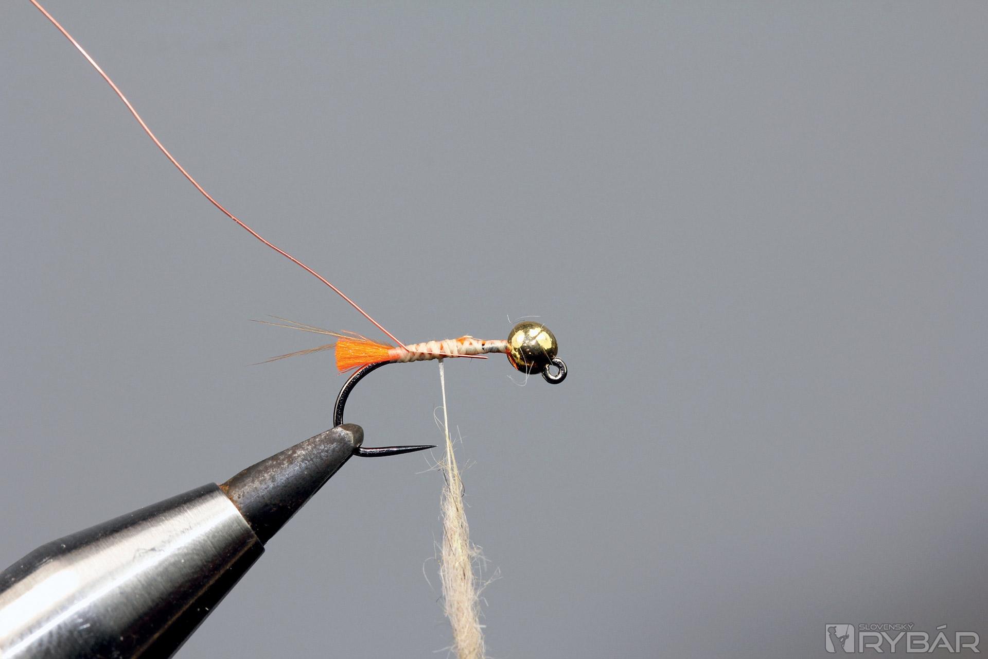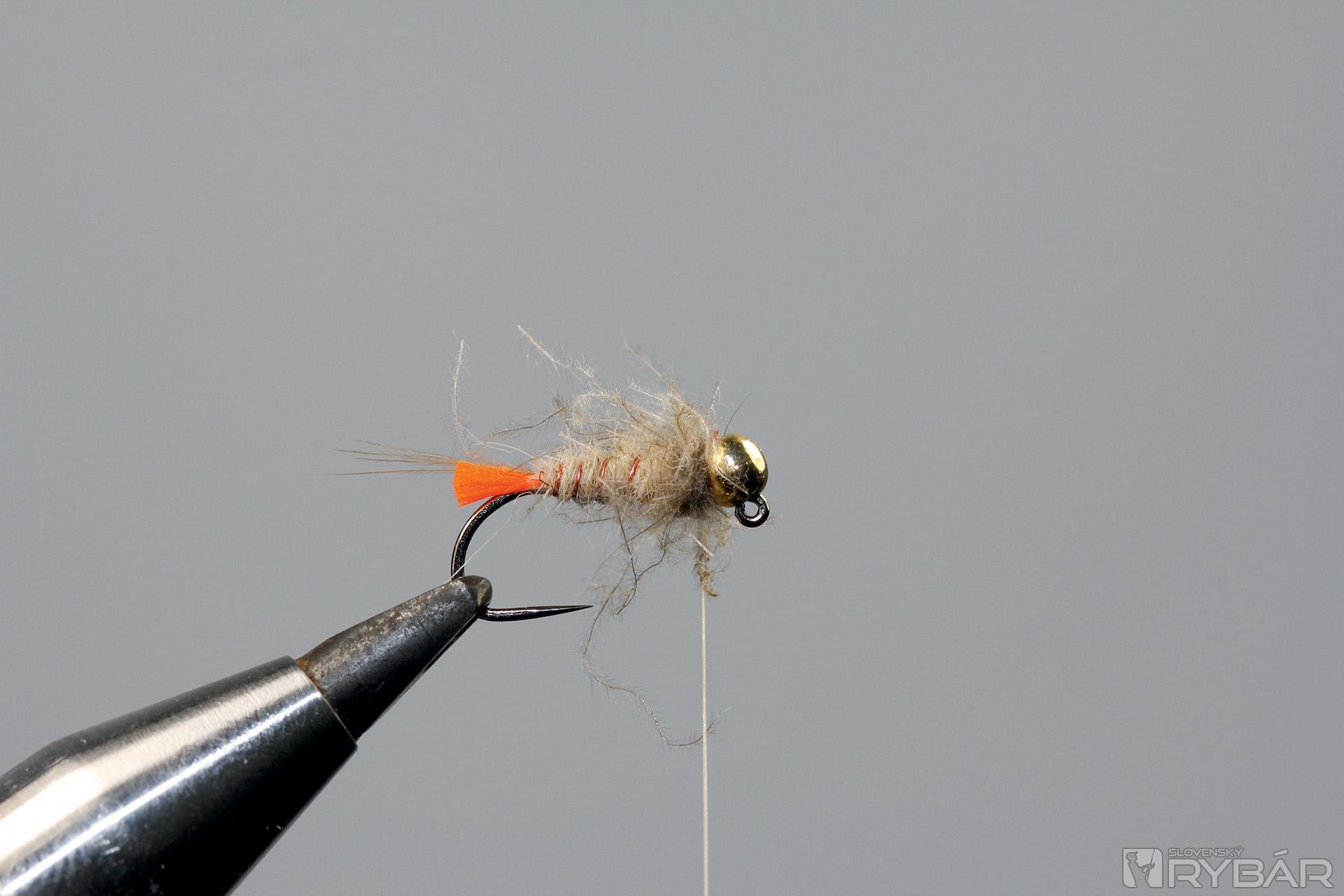 Na niť si nadabujeme prírodný dubing z vačice, alebo môžete tiež použiť lúče z chvostového pera bažanta.