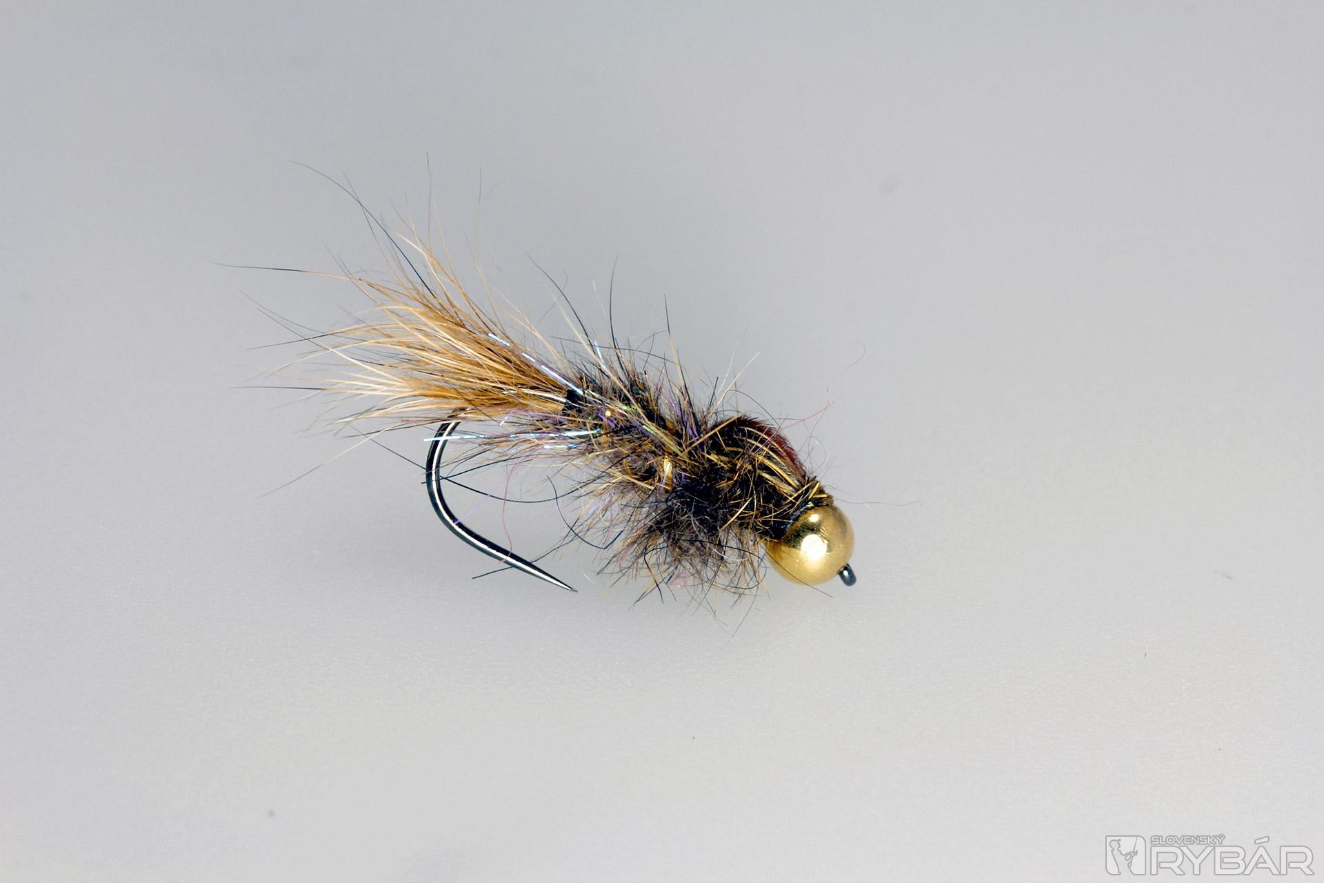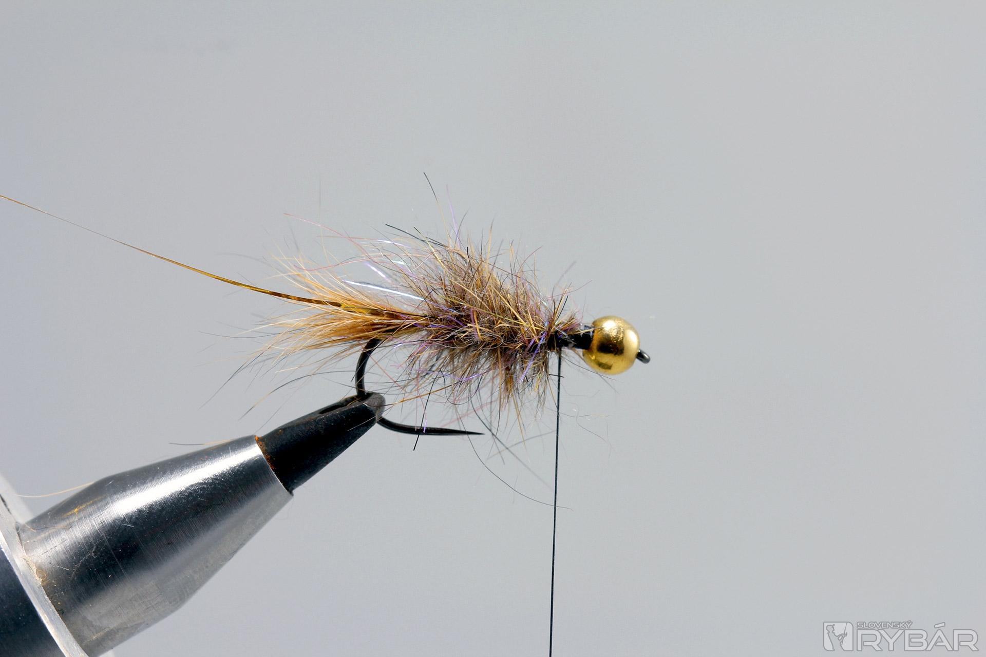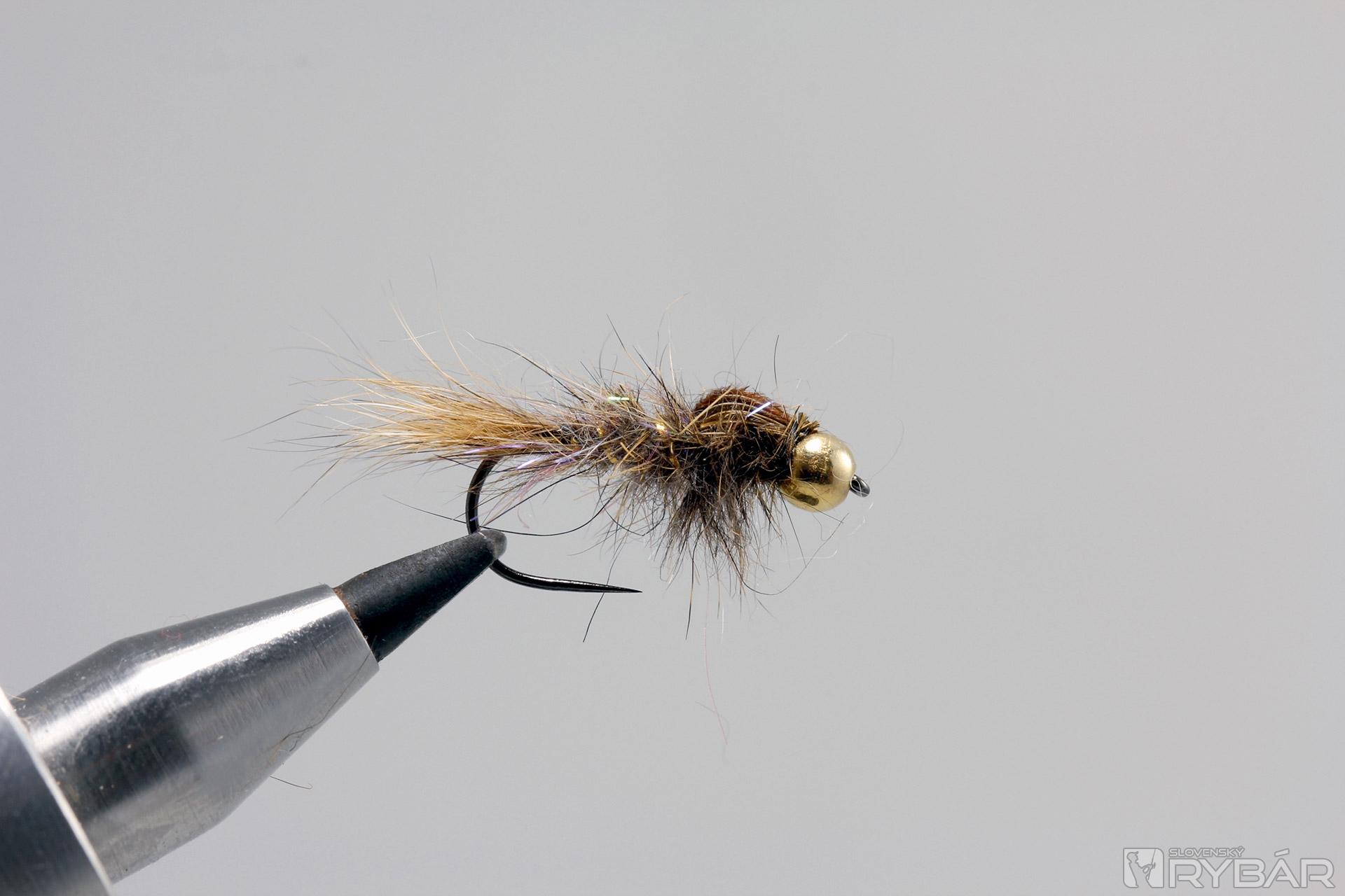 „Zlatom ovinuté zajačie uško“. Takto by mohol znieť doslovný preklad tejto známej nymfy, ktorú s úspechom používame počas celej sezóny, ale tento prírodný vzor je skvelý najmä na jej začiatku. Je možné ho viazať s viacerými materiálmi – bažantím chvostom, jeleňou srsťou, fantázii sa medze nekladú, mali by však byť dodržané základné „pravidlá“ – muška by mala byť omotaná zlatou lametkou a dabing by mal byť zo srsti zajačieho ucha. Záťaž môže byť pridaná vo vnútri mušky pomocou oloveného drôtika, alebo ako volfrámová guľôčka, prípadne ich kombináciou.
