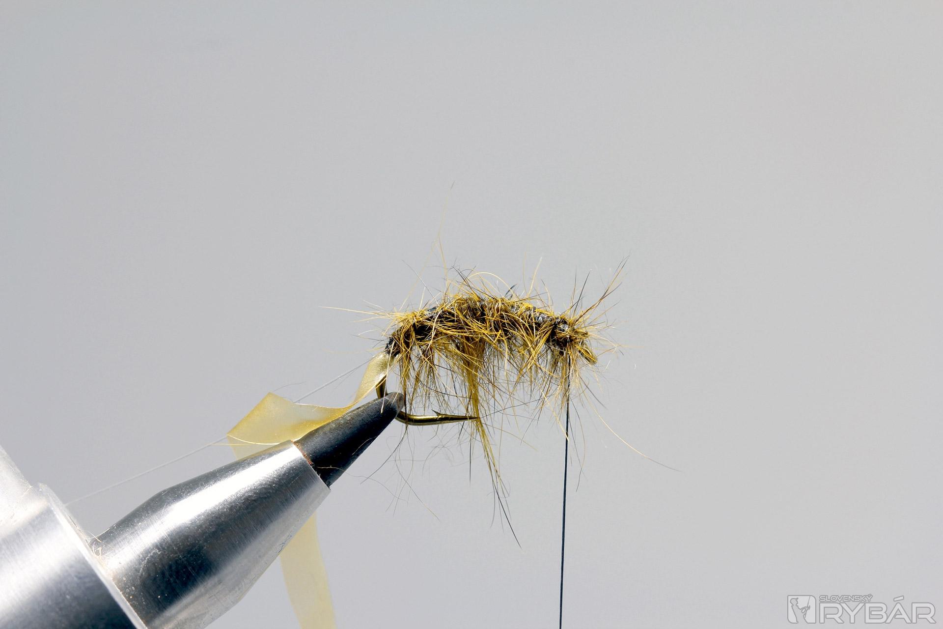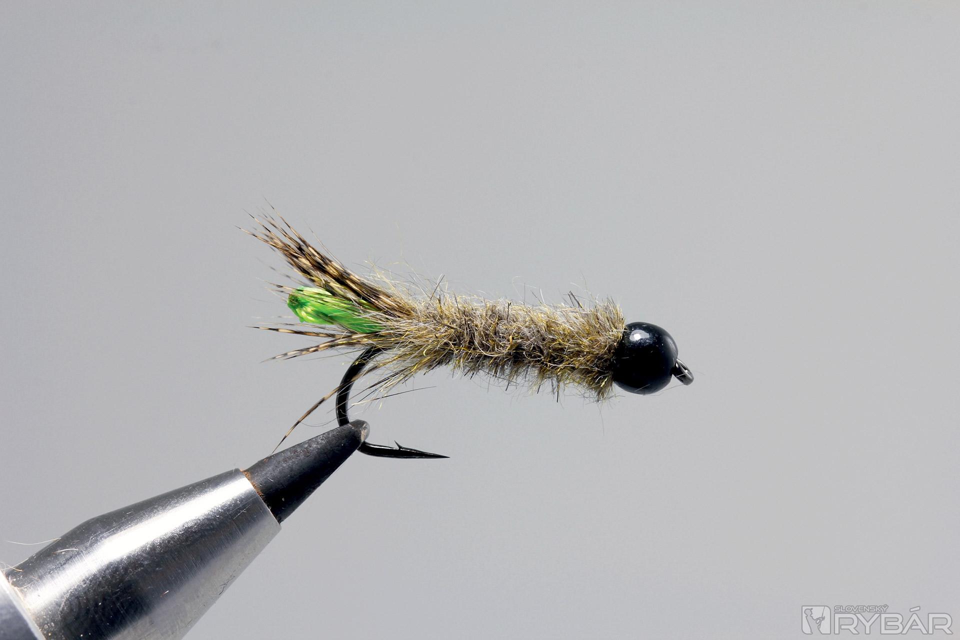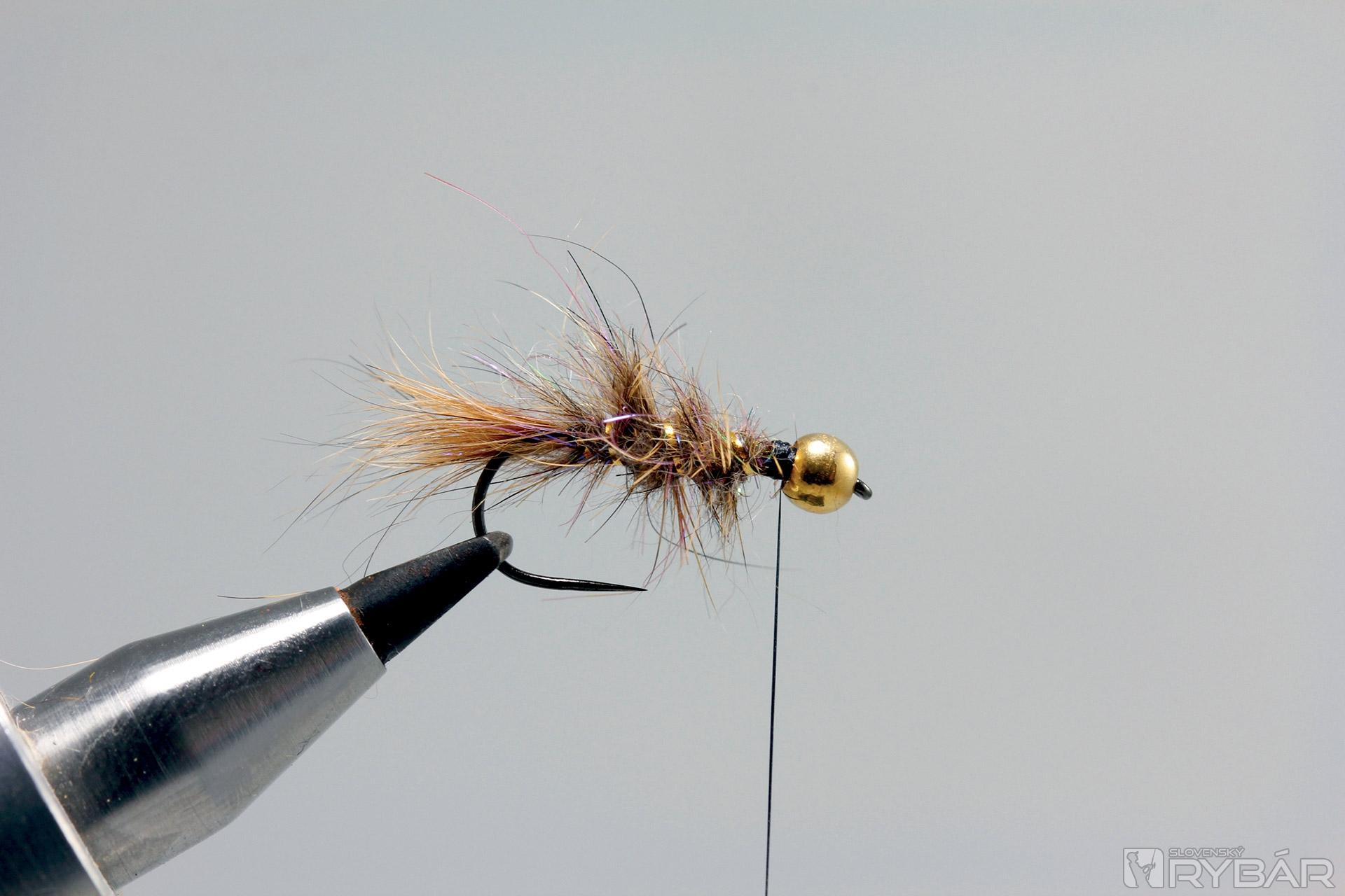 „Zlatom ovinuté zajačie uško“. Takto by mohol znieť doslovný preklad tejto známej nymfy, ktorú s úspechom používame počas celej sezóny, ale tento prírodný vzor je skvelý najmä na jej začiatku. Je možné ho viazať s viacerými materiálmi – bažantím chvostom, jeleňou srsťou, fantázii sa medze nekladú, mali by však byť dodržané základné „pravidlá“ – muška by mala byť omotaná zlatou lametkou a dabing by mal byť zo srsti zajačieho ucha. Záťaž môže byť pridaná vo vnútri mušky pomocou oloveného drôtika, alebo ako volfrámová guľôčka, prípadne ich kombináciou.
