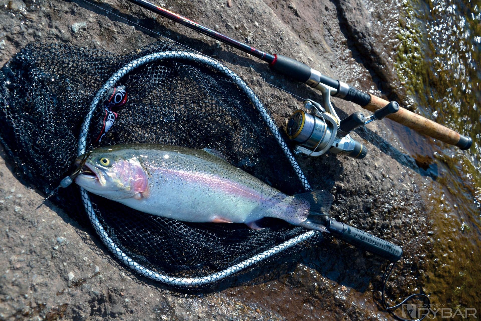 Dúhak cez 40 cm. Chýbali mu prsné plutvy, čo bolo dôkazom, že pochádzal z umelého odchovu.