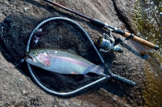 Z vysokého brehu som si vyhliadol miesto, kde bol pás rastlinstva redší a zišiel tesne k vode. Po niekoľkých hodoch som zdolal tri menšie ostrieže, chvíľu po tom mi nástrahu vzala evidentne väčšia ryba. Dlhé výpady dávali tušiť, že na háčiku je pstruh dúhový. Veľkosť ryby som však nevedel odhadnúť, zabrala na voľnej vode ďalej od brehu. Postupne som ju dostal ku brehu. Zamotala sa však do rastlinstva, zostávalo len čakať ako to dopadne. Plynulým ťahom prúta som nakoniec rybu vymanévroval z rastlín a unavenú naviedol do podberáka. Dúhak presahoval 40 cm, bol pekne vyfarbený, ale na prvý pohľad ma upútali chýbajúce prsné plutvy. Je to znak toho, že ryba pochádzala z intenzívneho chovu, kde rástla v stiesnených podmienkach. Rybu som si privlastnil a pomaly kráčal k autu. Bol som spokojný, chvíľu som sa opäť venoval svojmu koníčku a moja snaha bola odmenená pekným úlovkom.