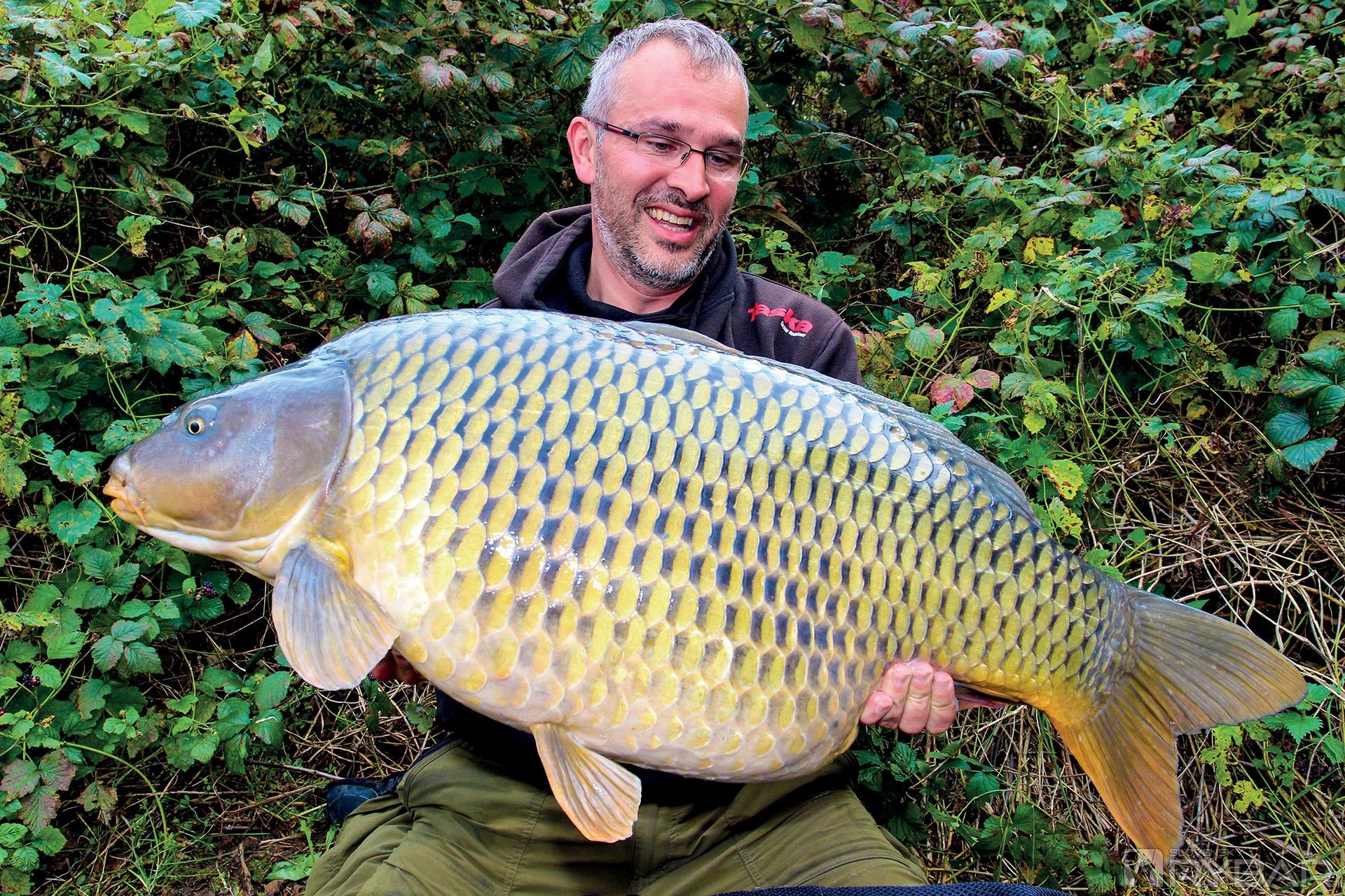 Záber bol pomerne nevýrazný, rovnako tak aj celá fáza zdolávania. Tipoval som to na ďalšieho kapra z kategórie do ôsmich kíl. Žiadne výpady, žiadny tupý ťah, a tak som ani neuvažoval o lodi a zdolával z brehu. Čoskoro som naviedol do podberáka krásneho lysčeka. Menšie ryby som neťahal na podložku a vyháčkoval ich priamo v podberáku. Bol tu pomerne vysoký breh, a tak som si musel kľaknúť, ľavou rukou chytiť kapra za papuľu a pravou mu vypáčiť háčik. Potom stačilo otočiť sieťku a ryba bola voľná. Rovnako som sa to chystal urobiť aj s touto rybou. Lenže, Heavy carp č. 6 sedel tak dokonale, že to rukami vybrať nešlo, nech som sa snažil akokoľvek. „Nedá sa nič robiť, musím ťa vziať na breh“, hovoril som kaprovi a zdvihol ho v sieťke do výšky. Ale čo to?! Je to ťažké, ako keby v podberáku okrem kapra bolo aj niekoľko pív. „Ty vole, to nie je malá ryba a ty si ju chcel rovno pustiť?“ Udivene sa pýtam sám seba. Preložil som kapra do vážiaceho saku, zobral váhu a nechápal, čo sa deje. Len pevne sediaci háčik zabránil tomu, aby som bez mihnutia oka pustil 16,4 kg kapra. Nie som debil? Spravodlivosti sa však dostalo zadosťučinenia. Keďže nebol nikto v okolí, fotil som s pomocou statívu. No, s pomocou, skôr som bol zrelý do pomocnej. Kapor mi kĺzal z rúk, ako som ho stále polieval, tak som vytvoril kaluž, v ktorej som sa šmýkal aj ja. Nemal som so sebou diaľkovú spúšť, takže som mokrou rukou siahal na foťák, navyše, ako som sa k nemu predkláňal, tak prístroj ostril inak, než som potreboval. Nebudem to ďalej viac rozvádzať, pretože by som sa akurát rozčúlil sám nad sebou. Po úpornej drine som urobil niekoľko fotiek, z ktorých niektoré boli biedne a niektoré strašné. V tú chvíľu som to, samozrejme, ešte nevedel, pretože na displeji to vždy vyzerá lepšie, než keď to potom doma dáte na veľký formát.