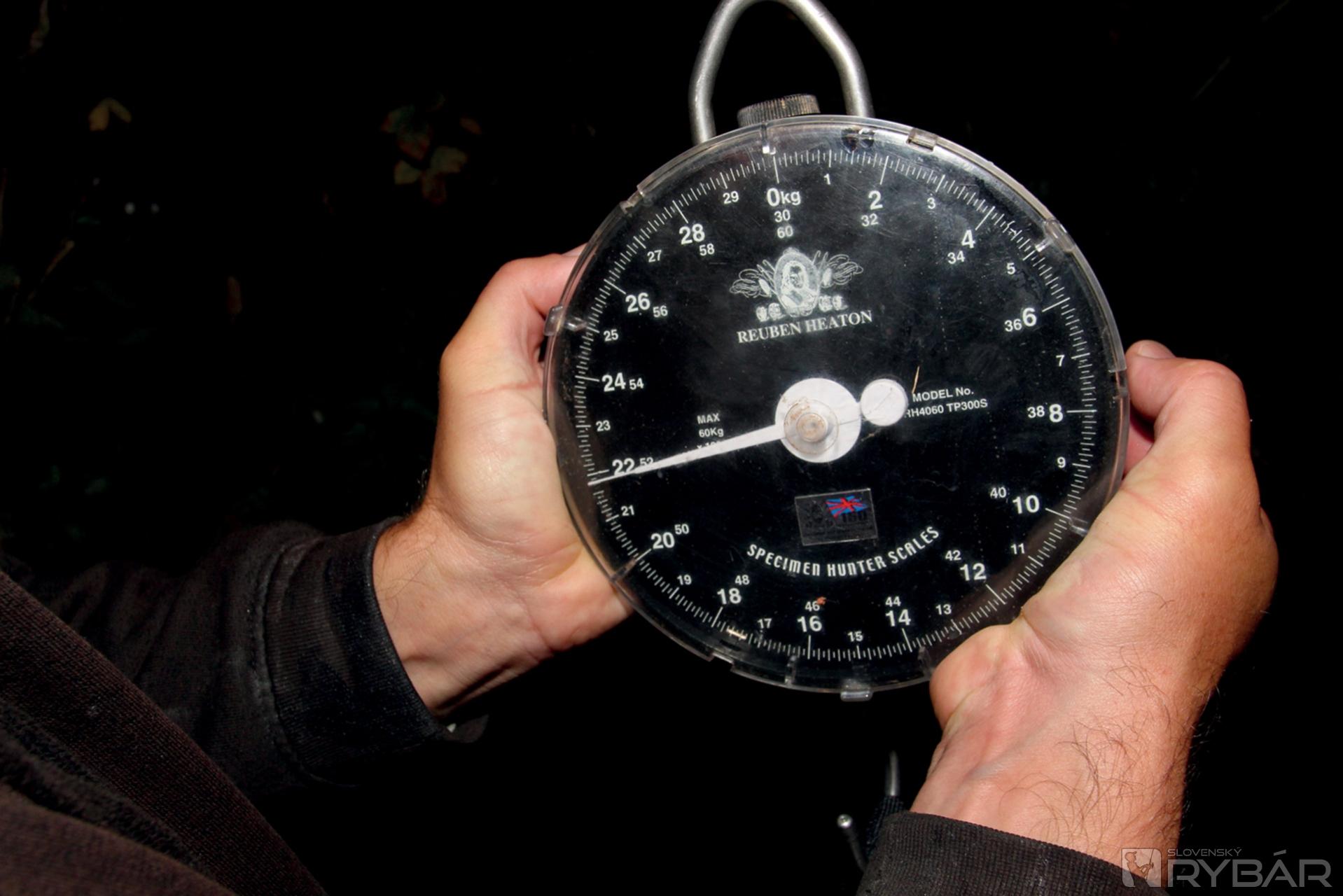 O necelú hodinu prichádza na ľavý prút pomalý záber. Ryba ide do pomalého, ale silného ťahu. Preto idem opäť radšej na loď, aj keby to zase mala byť desiatka. Tentoraz je zdolávanie kratšie. Ryba si len dvakrát vezme cez brzdu, inak nič neobvyklé. Snáď len také ťukance v koncovej fáze zdolávania. Na hladinu vyjde veľký lysec. Snažím sa ho podobrať na prvú dobrú, čo sa darí. „Pekný“, hovorím si. Pripadá mi plus mínus veľký ako ten šupík, teda niečo okolo 18 kg. Keď však zdvihnem podberák cez okraj lode do pripravenej podložky, začína mi dochádzať, čo sa stalo. Nech zožeriem koryto, ak to nie je cez dvadsať! Karel na brehu má na to iný názor. „Šestnásť až osemnásť“, šacuje môj úlovok. „To sa chlapče mýliš“, tak mu vravím. „Ja si dokonca myslím, že to bude môj osobák. Ja som tú rybu dvíhal, ty ju vidíš len z boku.“ No nič, najlepšie je presvedčiť sa, kto bude mať pravdu. Najprv vyťahujeme meter, ktorý ukazuje „iba“ 89 cm, ale hmotnoť 21,8 kg!!! Bingo, 21,4 kg zo slovenskej Kráľovej prekonaných českou zväzovkou! Super, super, super. Trepeme sa po chrbte ako malí chlapci. Ručička síce chvíľami vystreľuje cez 22 kg, ale ustaľuje sa najčastejšie na tých 21,8 kg. Bolo by pekné mať rybu cez dvadsaťdva, ale hmotnosť pre mňa až toľko neznamená, tak prečo by som pridával dve deka, navyše, aspoň mám motiváciu tú hranicu pokoriť nabudúce. No a o tom si povieme práve v budúcom čísle.