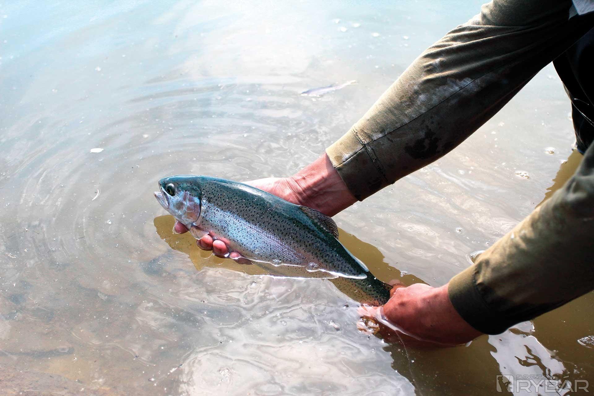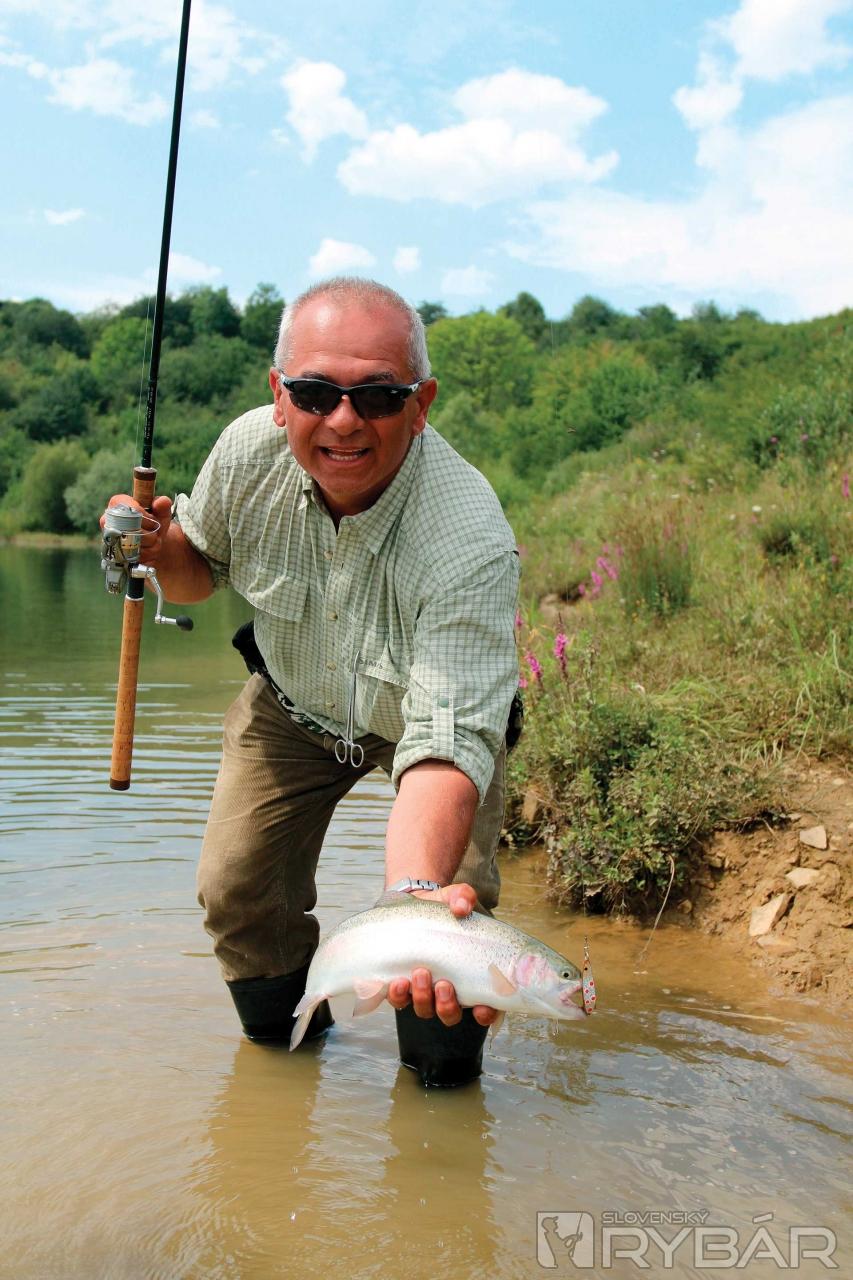 Náhle, nečakane na poludnie prichádza záber. Konečne prvý dúhak. Žiaden „mega“ pstruh, ale aj štyridsiatnik poteší. Po chvíli nasleduje ďalší o niečo väčší. Začínajú brať, obed počká… Skutočne, každý ulovíme asi osem pstruhov medzi štyridsiatimi až päťdesiatimi centimetrami a potom opäť nasleduje „ticho“. Ryby sa stratili.
