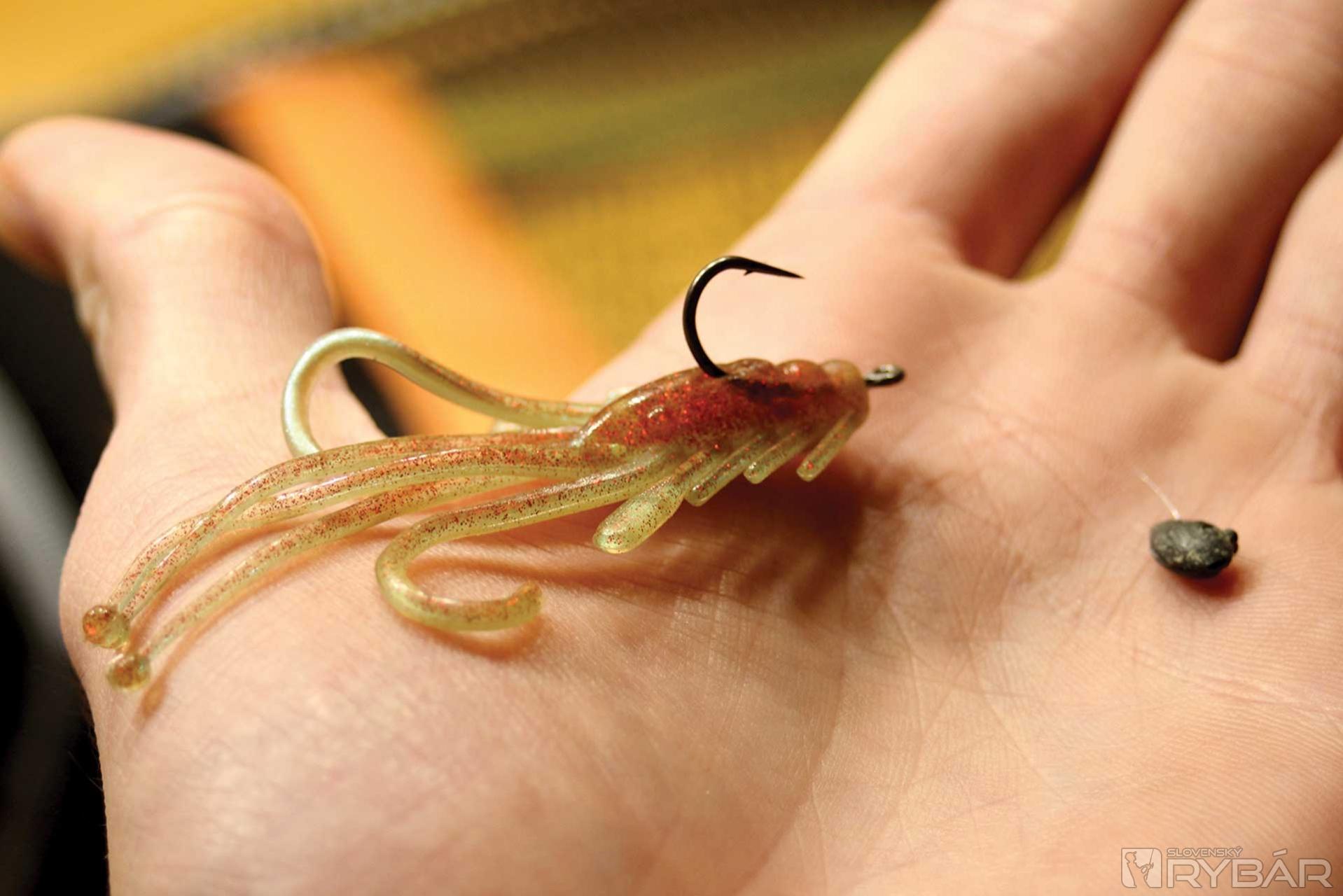Posledným článkom, ktorý už tretiu sezónu nosievam k vode, sú obyčajné plavačkarské broky. Nástrahu napichnem na malý háčik s očkom a na fluorokarbónový nadväzec, podľa sily vetra a veľkosti gumy, dopasujem vhodný náklad olova. Pritom pohyb napr. smáčika tým vôbec neskazím, práve naopak.