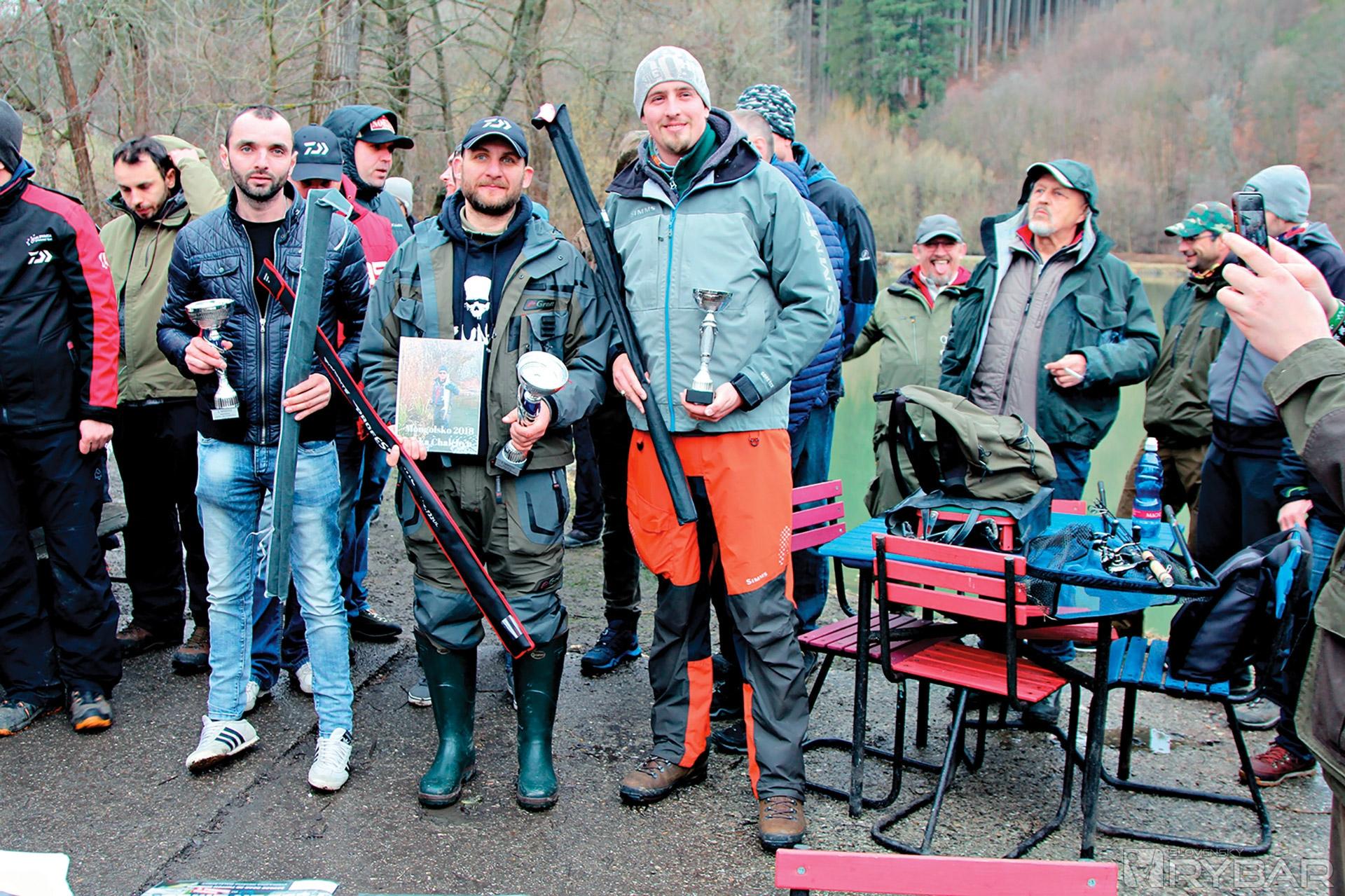 Vráťme sa však k spomínaným pretekom. Vylosoval som si miesto hneď vedľa Jura Smatanu. Takže si môžme dať taký mini súboj. Chytáme však až ako druhí v poradí, prvé kolo sme rozhodcovia. Ja rozhodujem Peťovi Marcinovi, ktorému hneď od začiatku ryby pekne reagujú na ružovú gumu. Počas 30 minút ich zdoláva 6, čo je celkom pekný výsledok. Skúšal pár nahodení s plandavkou, ale bez úspechu. Následne prichádzame na rad my. Ja začínam s podobnou gumou, ako mal Peťo. Po chvíli mám prvého pstruha. Vedľa mňa Juro dáva prednosť plandavke a ťahá rybu za rybou. Skúšam preto plandavku aj ja. Hneď prvým hodom vyťahujem pstruha, no potom som asi 10 minút bez záberu. Kolo sa rozhodnem dochytať s gumou. Končím so 4 pstruhami, Juro ich má 10. Pekne ma rozbil.