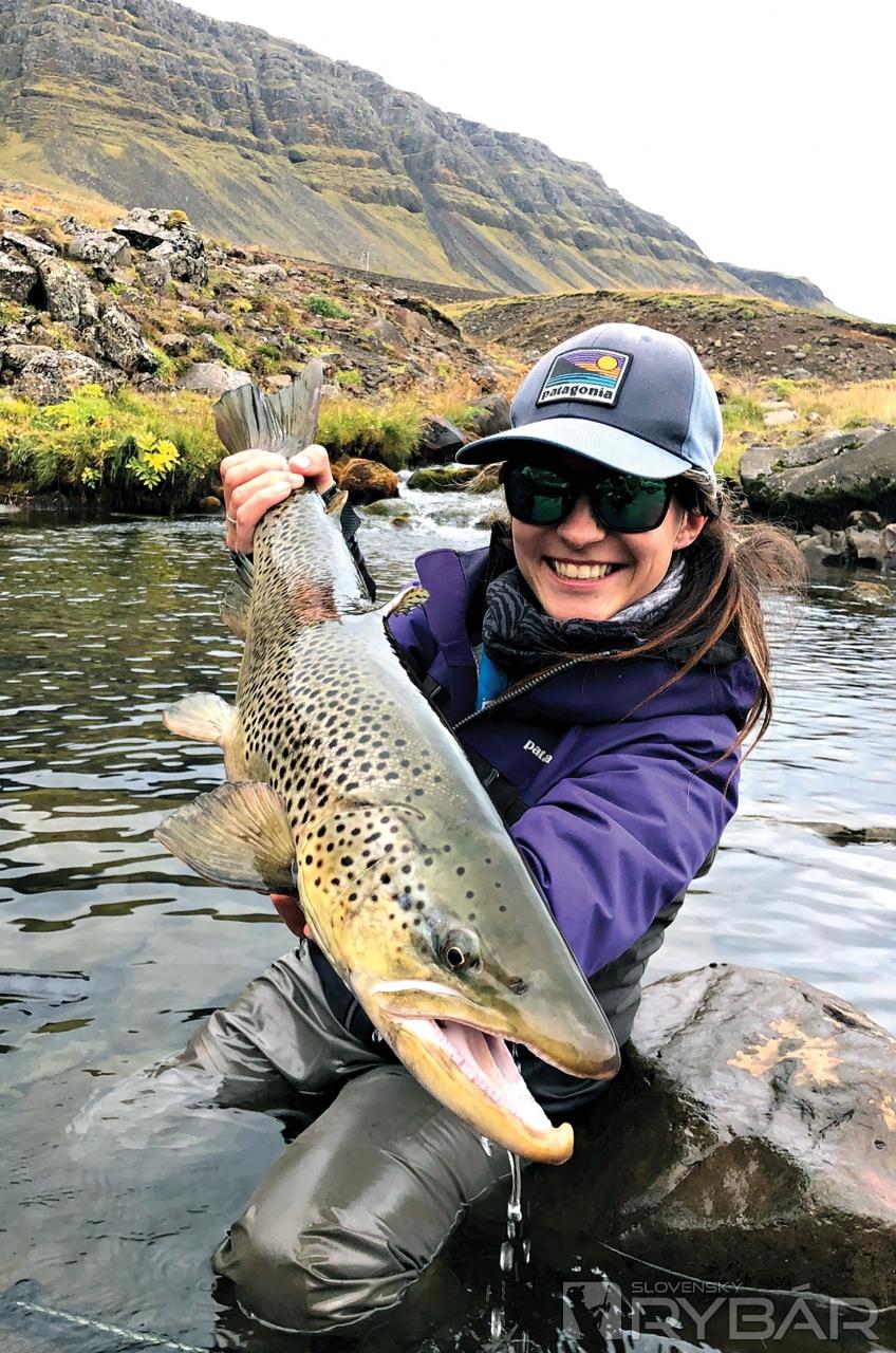 Svoju prvú cestu na Island som uskutočnila v apríli 2016. Mala som možnosť chytať na svetoznámom jazere Thingvellir, kde sa podľa vedcov vyskytujú tie najväčšie potočáky, ktoré tu boli izolované počas poslednej doby ľadovej zhruba pred 2 miliónmi rokov. Aby nie! Jazero Thingvellir je najväčším jazerom na Islande a maximálna hĺbka tu dosahuje až 114 metrov. Hlavná sezóna prebieha od polovice apríla do konca mája, keď teplota vzduchu stále atakuje 0 °C a po oblohe poletuje sneh. Nie je to akurát najpríjemnejší štýl chytania, lebo musíte stáť minimálne po pás zabrodení v ľadovej vode, ale každý ulovený potočák vám ten nekomfort celkom iste vynahradí. Menšie ryby sa pohybujú medzi 55 až 70 cm a tie skutočne trofejné presahujú aj magickú hranicu 1 metra! Bežne sa používajú 7 WT a 8 WT prúty s intermediálnou šnúrou a strímre rôznych farieb. Najosvedčenejší je biely strímer s oranžovo-zelenými znakmi, napodobňujúci arktického sivoňa. Arktické sivone totiž tvoria ich hlavnú potravu. Čas od času, keď sa na oblohe objaví slnko a slnečné lúče aspoň o pár stupňov prehrejú vodu, môžete vidieť ryby, ktoré krúžia pod vodnou hladinou a zbierajú prvý rojaci sa hmyz. Z toho dôvodu sa na zbierajúce ryby najčastejšie používa „mucha plavák“ alebo plávajúci indikátor so zavesenou nymfou typu bažant alebo zajačie uško.