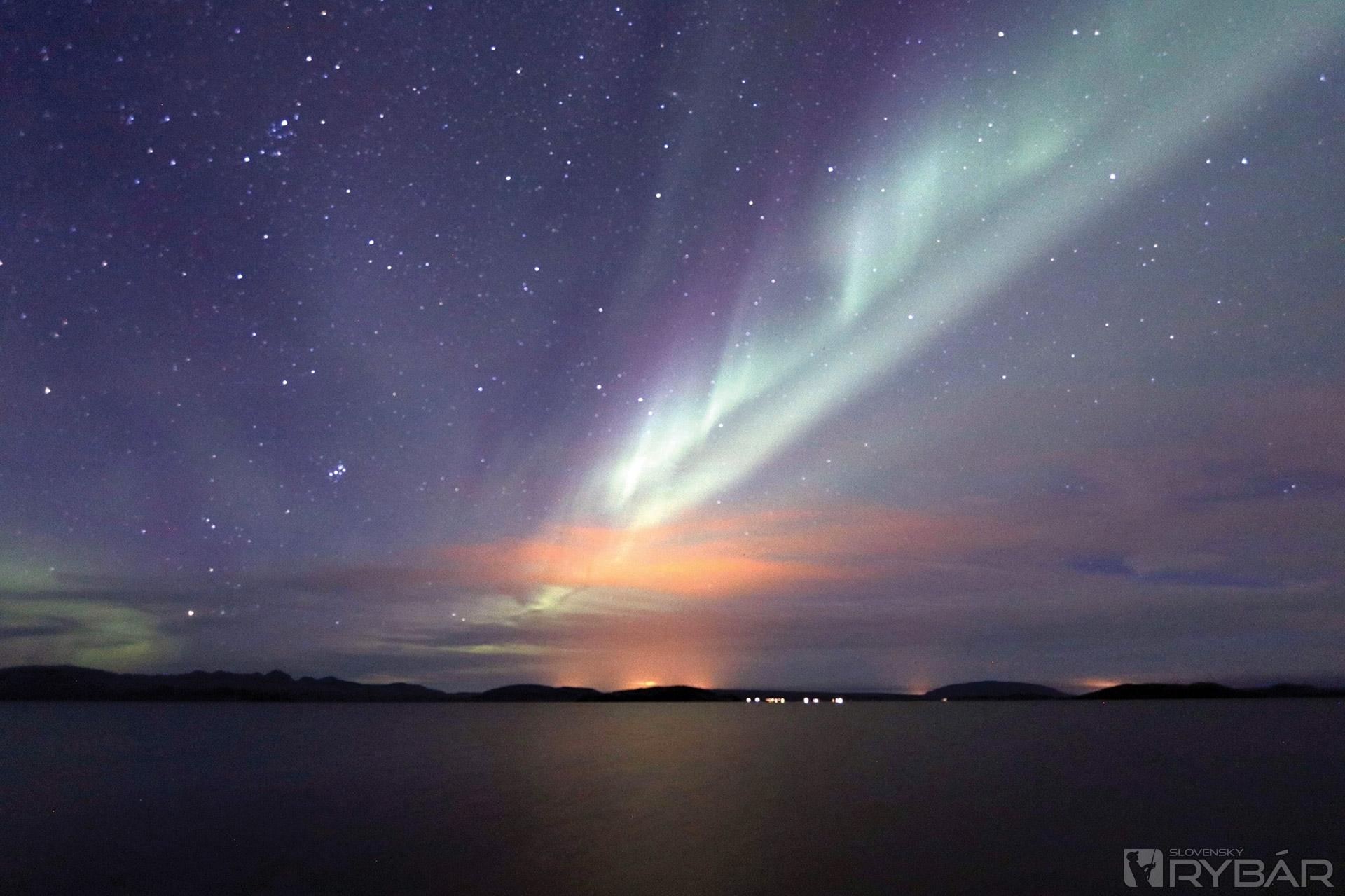 V práci som skončila po 22. hodine, už sa začalo stmievať a predikcia pre polárnu žiaru bola v ten večer na maximum. Teplú večeru som vymenila za rýchly sendvič do ruky, do auta prihodila pár vrstiev z vlny merino, termosku s čiernou kávou a mohlo sa vyraziť. Jazero leží len pár desiatok kilometrov od miesta, kde pracujem, takže po 23. hodine sme už boli pri vode. Bolo pomerne chladno, okolo nuly, a bolo jasné, že teplota ešte klesne pod bod mrazu. Keď počas prvých pár nahodení začala po oblohe tancovať polárna žiara, musela som s chytaním okamžite prestať. Len som stála a s úžasom sledovala to nádherné predstavenie, ktoré nakoniec trvalo až do rozvidnenia. Ale nebudem predbiehať...