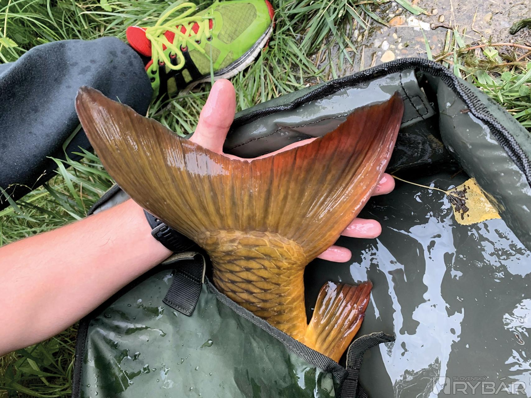 Bol to pomerne chladný deň a my sme sedeli na stoličkách, rozprávali sa a Dominik si ani neuvedomil, že mu vibruje príposluch zavesený na krku. Rozbehol sa a začal zdolávať. Kapor to skúšal z jednej strany na druhú, pozbieral cestou všetky zeliny, no napokon sa vzdal a prišiel si dať s nami na brehu pár fotiek. Krásny veľký šupináč, ktorý bol v skvelej kondícii, zdravý a bez akýchkoľvek porúch, putoval späť tam, kam patrí.