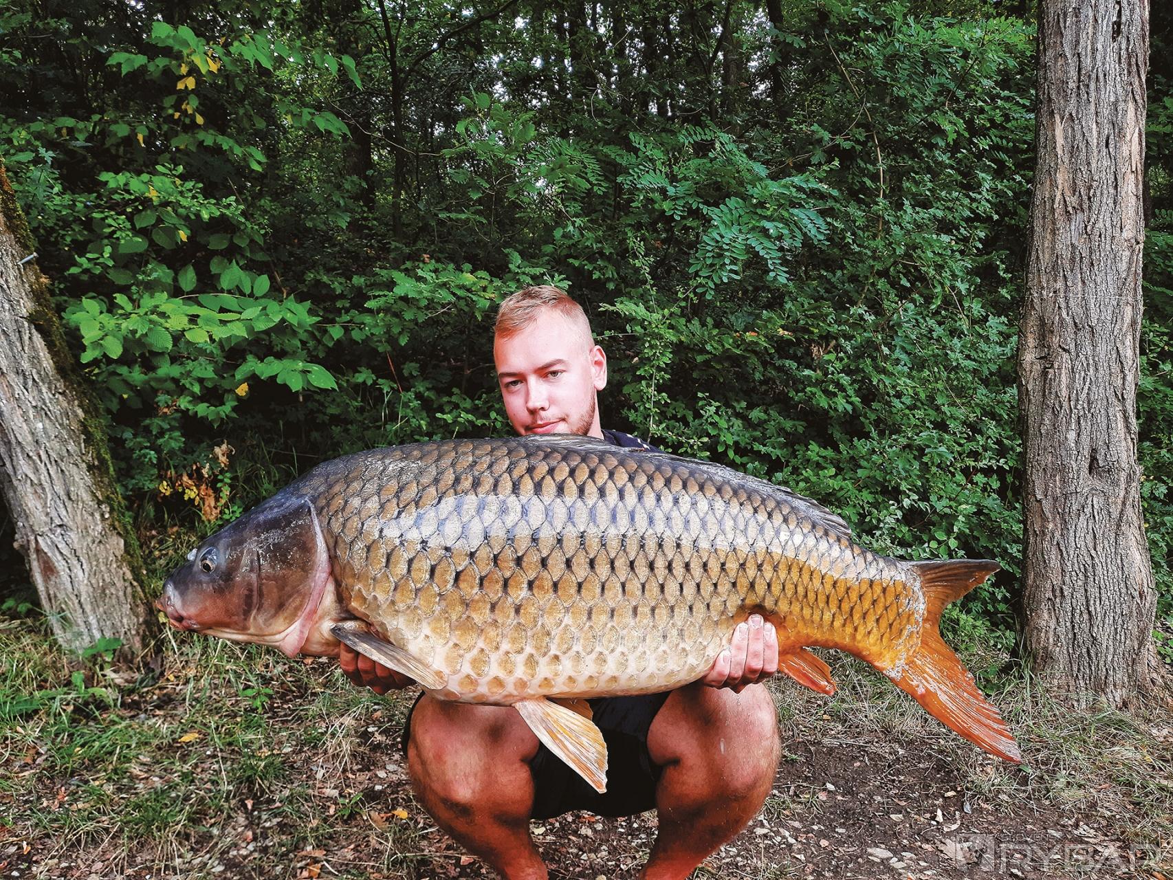 Z oboch lovných miest mi prichádzali ryby v priemernej hmotnosti od 9 do 11 kilogramov. Noc bola už pomerne pokojná a ďalšie ráno začalo hneď kapríkom veľkosti 9 kg. Potom však nastalo ticho, hoci nie nadlho. Po pomalej jazde na pravý prút nasledoval náročný súboj, pri ktorom mi kaprík nedaroval nič zadarmo, ale aj tak sa mi ho podarilo zdolať a výsledok bol viac než fantastický. Po podobratí krásneho šupináča som hneď vedel, že tento kaprík prekonal hranicu 15 kg a po odvážení sa to potvrdilo. Šupináč s čistou hmotnosťou 18 kg a zároveň môj nový osobák z miestnej vody v deň mojich menín… Proste – paráda!