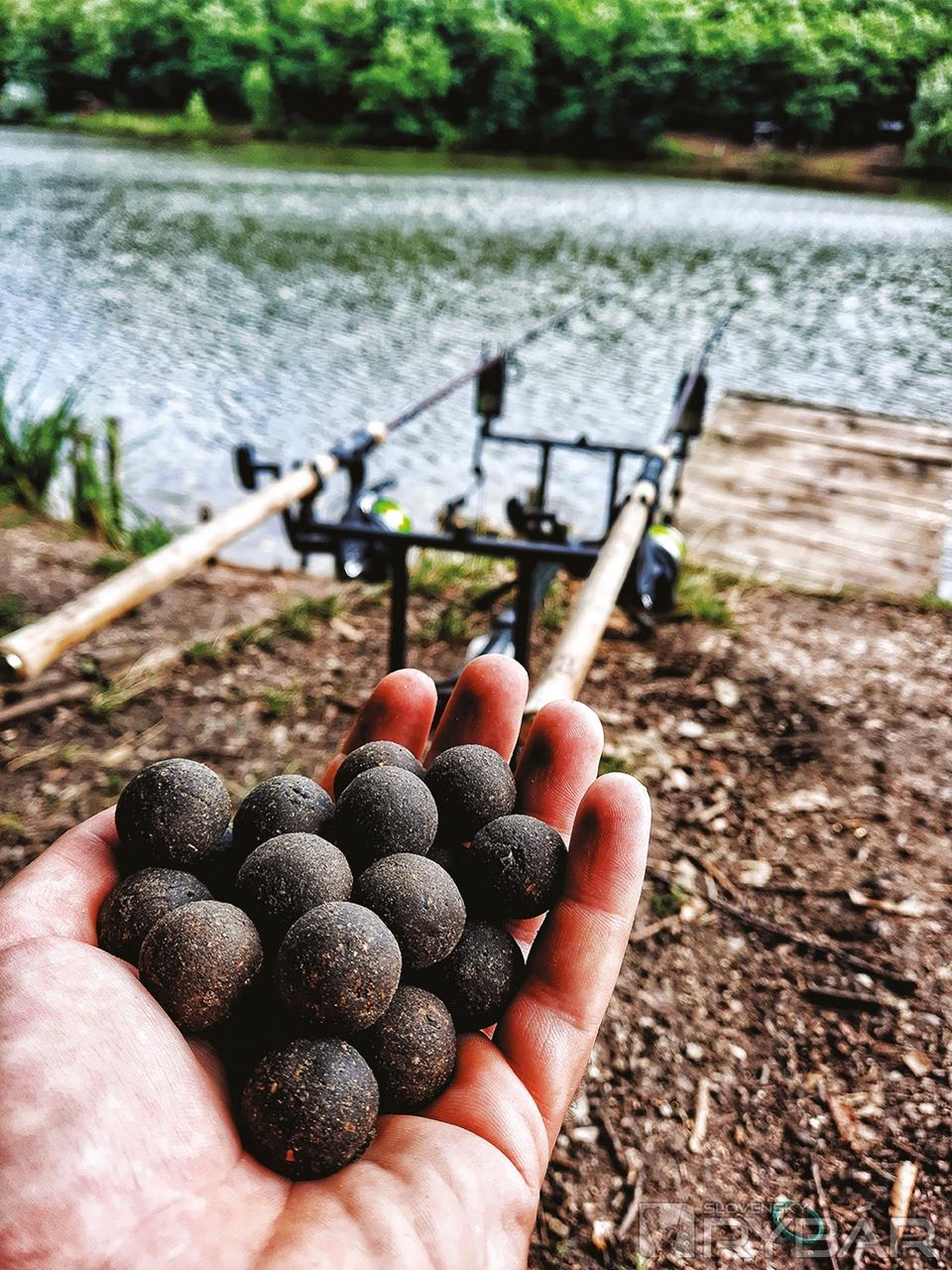 Na pravý prút som nastražil overené boilies z dielne Mikbaits, konkrétne príchuť GSP Black Squid v priemere 20 mm – novinku roku 2021. Na tejto vode mi totiž funguje na jednotku a priniesla mi zopár kapitálnych úlovkov, napokon, nebolo to inak ani na tejto výprave. Na ľavý prút som zvolil jednu z mojich obľúbených montáží, ktorou je Zig Rig, na tú som vybral wazzupku žltej farby, namočenú v ananásovej aróme. Počas horúcich letných dní je táto montáž super vec, keď sa ryba drží prevažne pri hladine. Po krátkej príprave som konečne nahodil. Prvá montáž smerovala kúsok od brehu a k nej za hrsť gúľ totožnej príchute, čiže GSP Black Squid 20 mm. Druhá montáž smerovala zhruba na stred jazera, kde som videl pohyb rýb pri hladine, a k nej zopár rakiet partiklu.