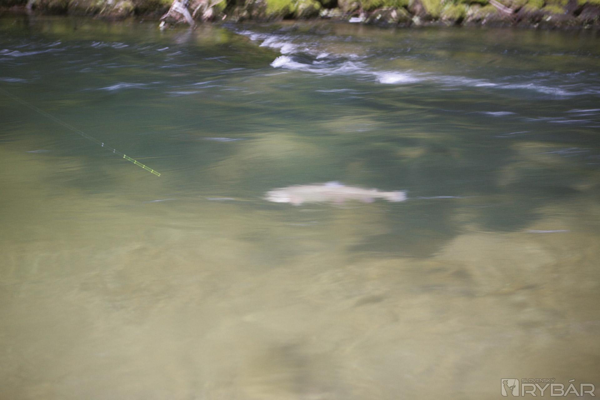 Po nahodení cca 1 m nad predpokladané miesto výskytu ryby musím mať okamžitý kontakt s indikátorom a snažím sa nymfu ihneď zdvíhať odo dna. Záber bude viditeľný na indikátore zastavením prirodzeného splavu alebo potiahnutím proti prúdu. Nasleduje zásek a predpokladám, že aj zdolanie peknej ryby.