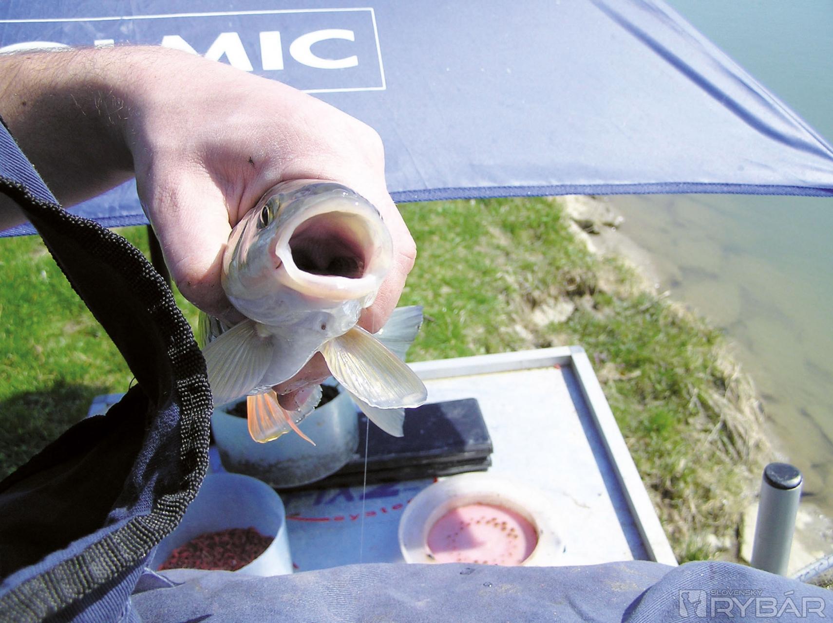 Ale späť k lovu. Po nakŕmení beriem do ruky ľahší zo systémov a na 18-ku háčik napichujem dve pinky. Už po pár preplaveniach mám záber a zdolávam malého jalčeka. Po ňom už mám zábery skoro na každé preplavenie, no ryby, ktoré chytám, sú príliš malé a ani jedna z nich nepresahuje 25 cm. O jalcoch je známe, že obľubujú veľké kúsky, a tak skúšam presedlať na väčšie ryby. Na ťažší zo systémov dávam desiatku hák, napínam hnojáka a päť veľkých bielych červov.