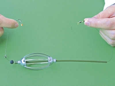V tomto prípade je nadväzec oveľa kratší a oproti priebežnej montáži, ktorá je naviazaná v dvojitom uzle, namiesto monofilného vlasca sa vyrába z tenkej splietanej šnúry. Háčiky aj v tomto prípade sú pomerne malé. Vyhovujúce veľkosti sú č. 8 – 10, poprípade č. 12. Ako nástrahy sa v prvom rade môžu používať menšie pelety, rôzne zrná, alebo mini boilies.