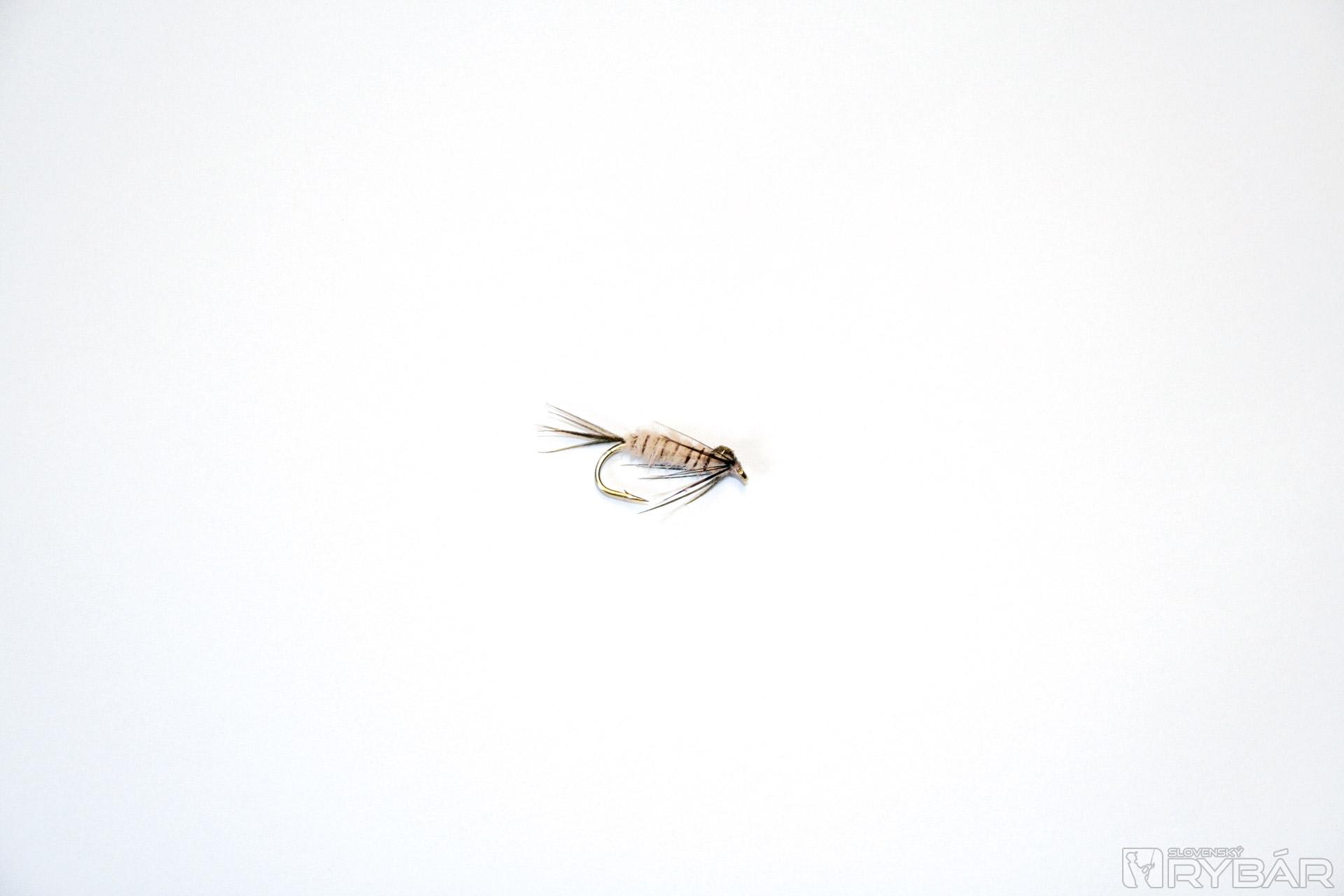 Nebudem sa veľmi rozpisovať o živote a podmienkach, pri ktorých žijú jednotlivé vývojové štádiá májoviek. Nymfy veľkých druhov podeniek, ktoré som si zobral za vzor, majú veľké svetlé telo a krátke štety. Vyskytujú sa hlavne v čistých úsekoch riek bohatých na kyslík. Muška, ktorú vidíte na fotografii, je viazaná na väčšom háčiku (veľkosť 8-10 ), je dosť zaťažená a celkovo vyzerá pre pstruha ako lákavý hlt. S týmto vzorom nymfy zaznamenávame úspechy temer celú jar a leto. Na jeseň a v zime, pri chytaní lipňov, alebo opatrnejších pstruhov, veľkosť prispôsobíme háčiku 14 – 18. S touto muškou lovíme na krátku nymfu. Ak chceme použiť metódu dlhej nymfy, použijeme menšiu, resp. menej ťažkú nymfu. S takouto svetlou farbou dubbingu je dobré loviť v čistejšej vode, najmä na jeseň.