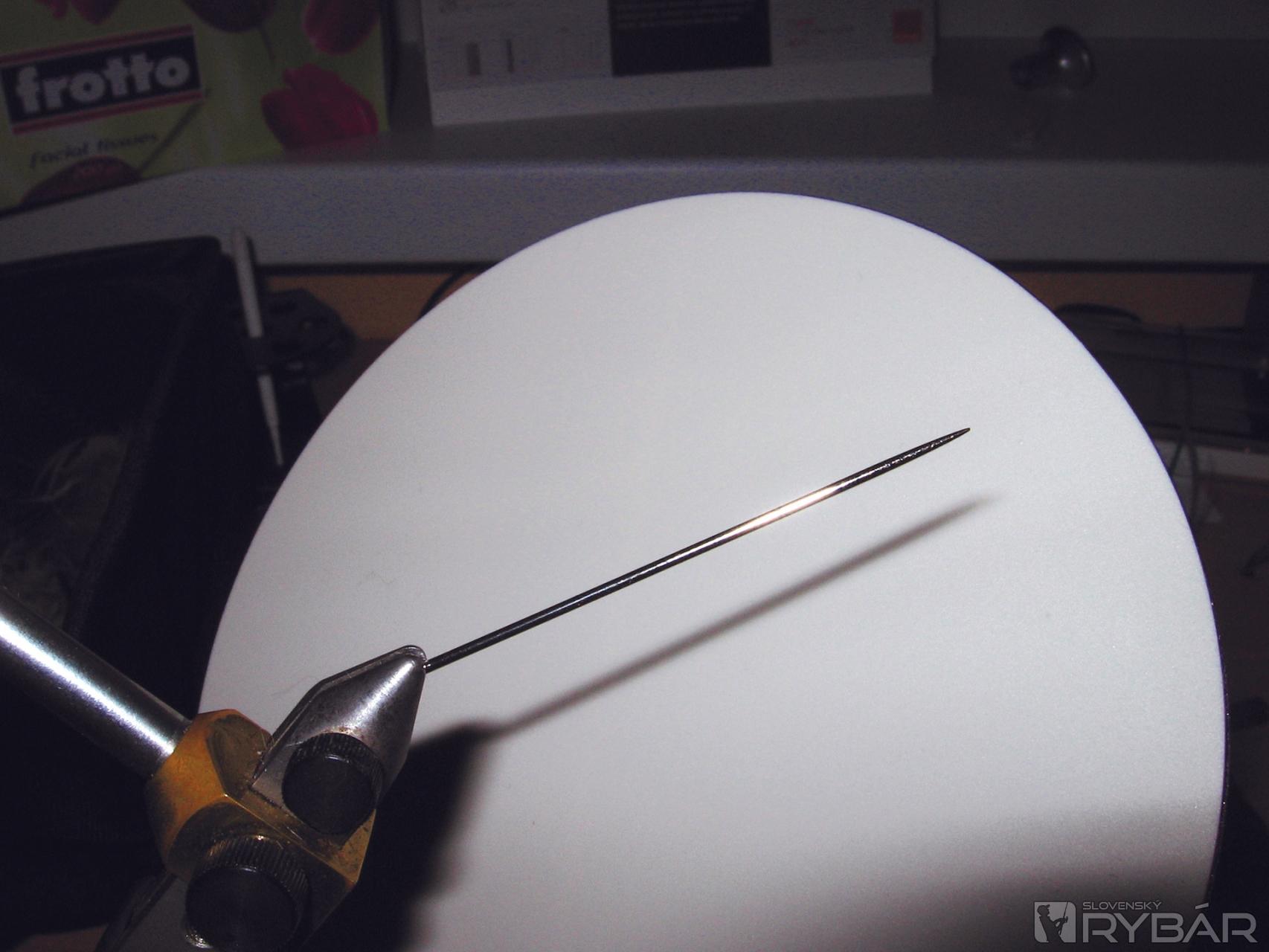 Do zveráka upneme ihlu, na ktorú budme viazať vyviazané telíčko.