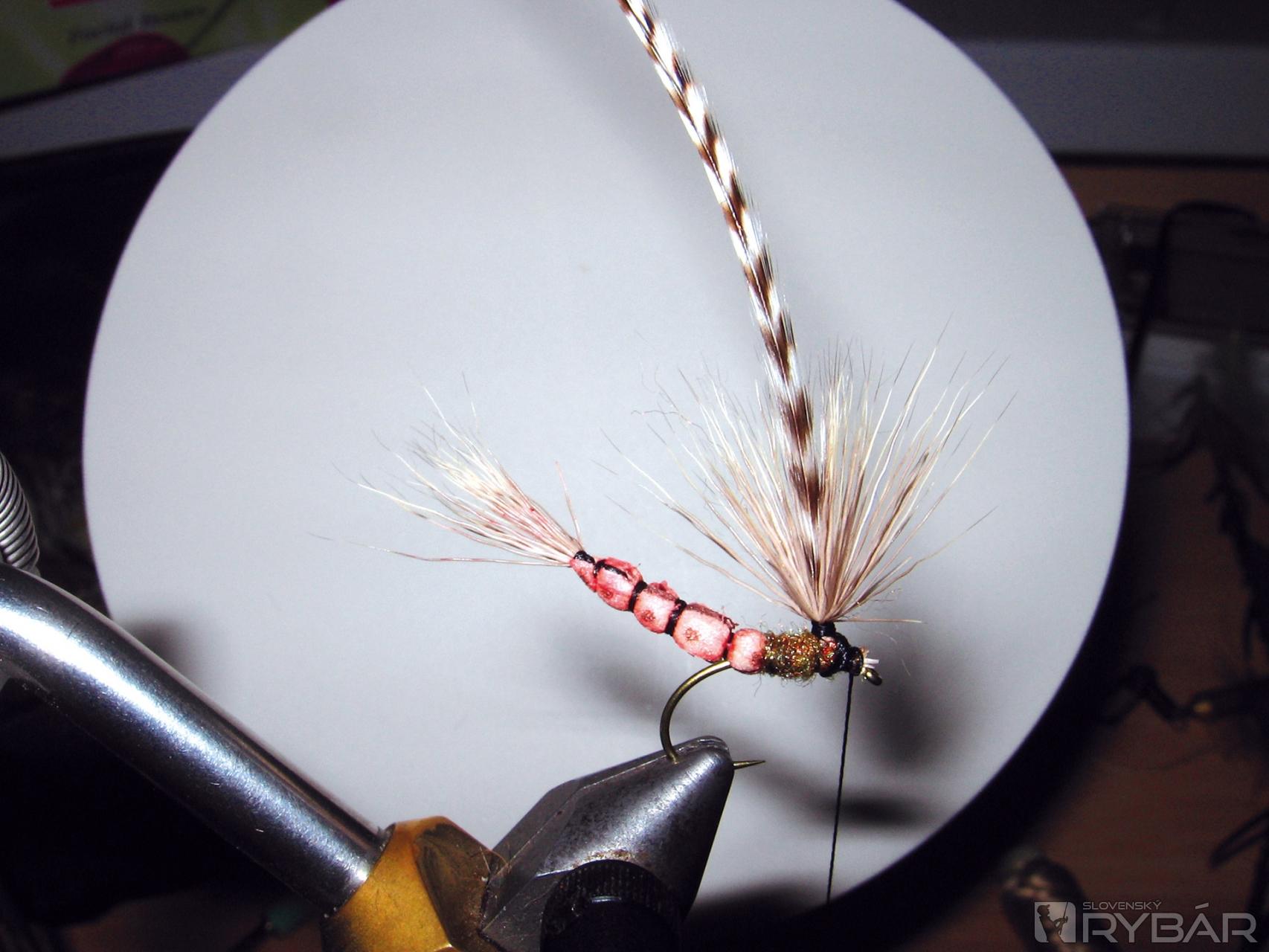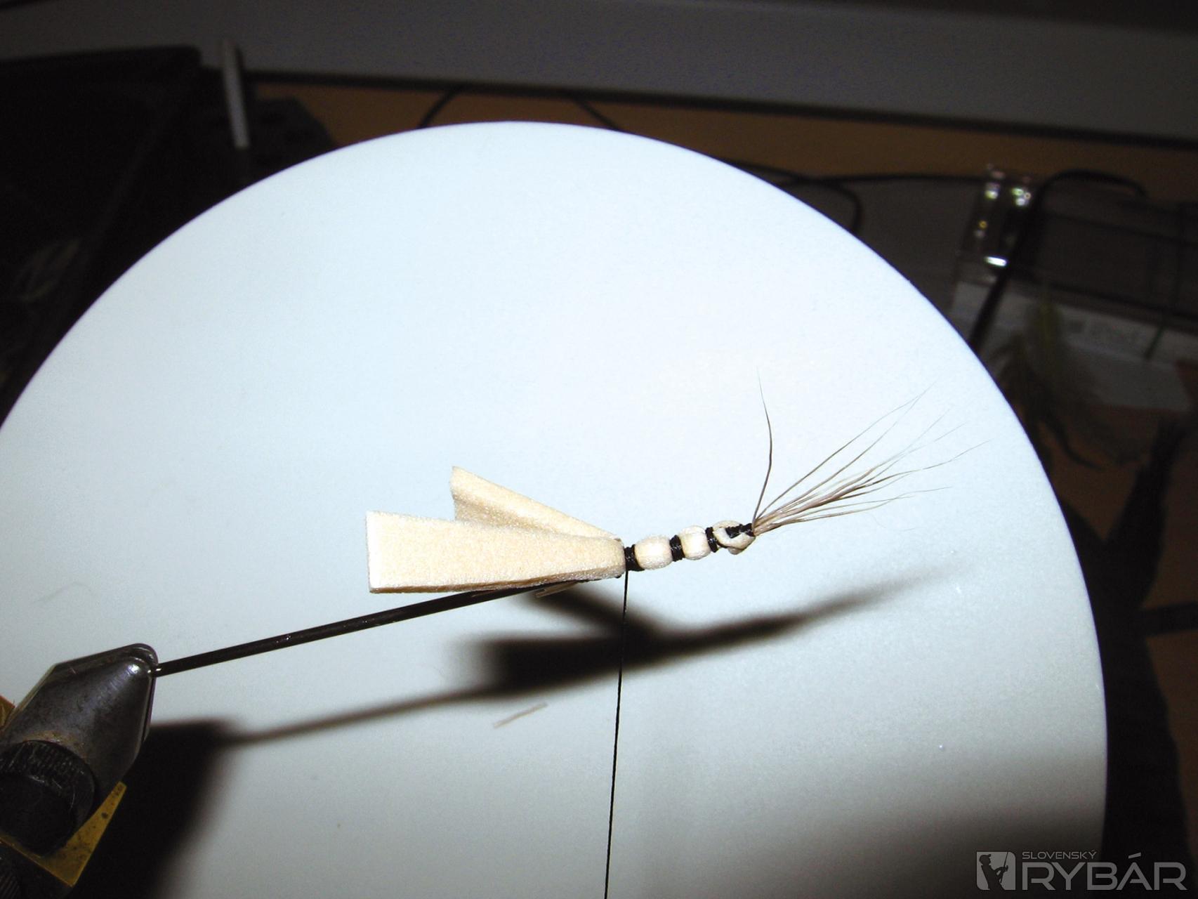 Používame teda veľké pierka CDC, zimnú jeleniu srsť, alebo umelý materiál typu Aero dry wing. Veľké májovky sú chutným a výživným hltom pre hladného pstruha. S tým by sme mali počítať a zhotoviť mušku tak, aby bola pre rybu v tomto ohľade lákavá. Takéto obrovské vzory nie sú v muškárskej škatuľke nenahraditeľné, ale je dobré ak ich niekoľko máme k dispozícii.