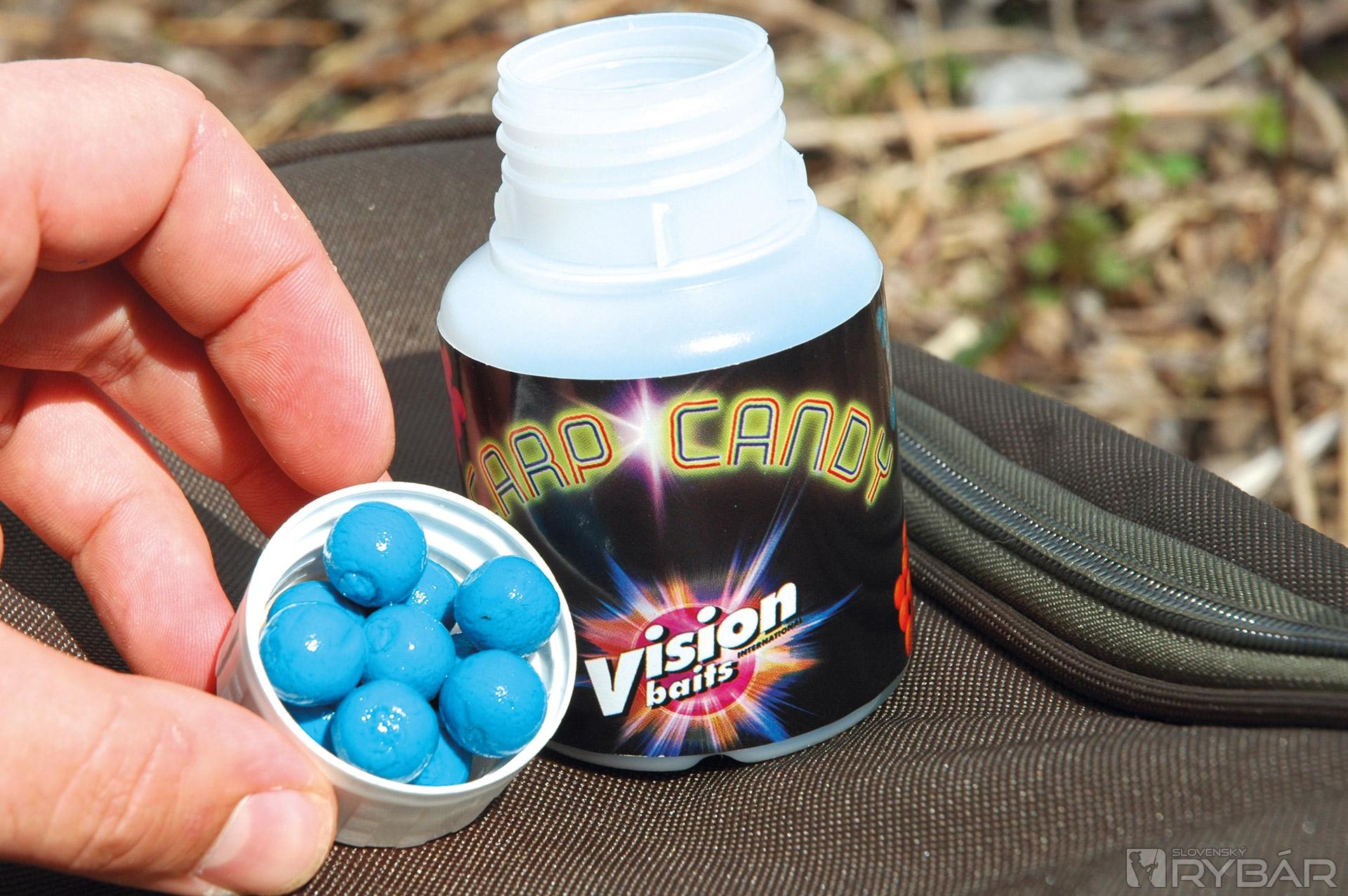 Pre tých, ktorí ale napriek tomu dávajú zo zvyku radšej prednosť guľôčkam, existujú na trhu tzv. rollbally veľkosti 11 mm, dokonca aj 8 mm. Pri plávajúcom boilies máme možnosť výberu z ponuky niekoľkých firiem, vyrábajúcich priemery 10-12 mm, napríklad Solar, Kevin Nash alebo Vison baits. Práve posledne menovaná firma uviedla na trh veľmi zaujímavú novinku pod názvom Carp Candy, ktorá ma veľmi oslovila. Ide o vopred nadipované atraktorové miniboilies vo fluoro farbách, ako v plávajúcej, tak aj v potápavej verzii. Ďalšou možnosťou, ktorú často používam, je orezanie pop-upu klasickej veľkosti na takú, ako potrebujem. Takto som si schopný upraviť veľkosť i tvar podľa aktuálnej potreby. Musíme ale brať do úvahy, že takto orezané boilies skôr natiahne vodu, a tým rýchlejšie stráca svoju vzplývavosť.
