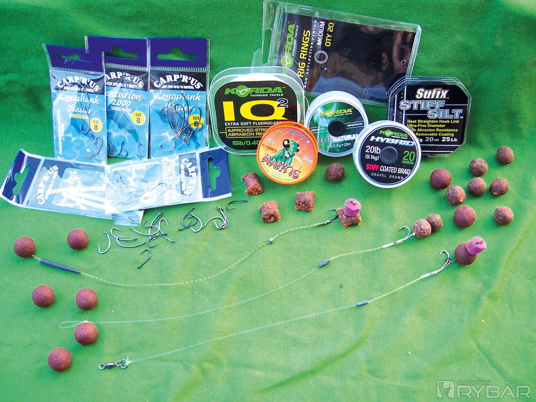 Háčiky som si obľúbil Carp‘R‘Us longshank nailer č. 6 a č. 8 naviazaný ako blowback rig, straightshank nailer č. 8, a centurion 2000 č. 8.