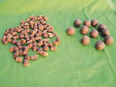 Čo sa týka hotového boilies, tak tu už môžeme vyberať z ponúk viacerých firiem. Najschodnejšou cestou je vyrobiť si miniboilies doma zo svojej obľúbenej zmesi a tekutých atraktorov. Uvediem jeden príklad, ako si výrobu uľahčiť. Vzhľadom na to, že s takýmito malými návnadami nie je možné vnadiť kobrou na dlhšiu vzdialenosť (technikám vnadenia sa budem venovať neskôr), nie je potrebné vôbec vyrábať boilies v tvare guľôčok.