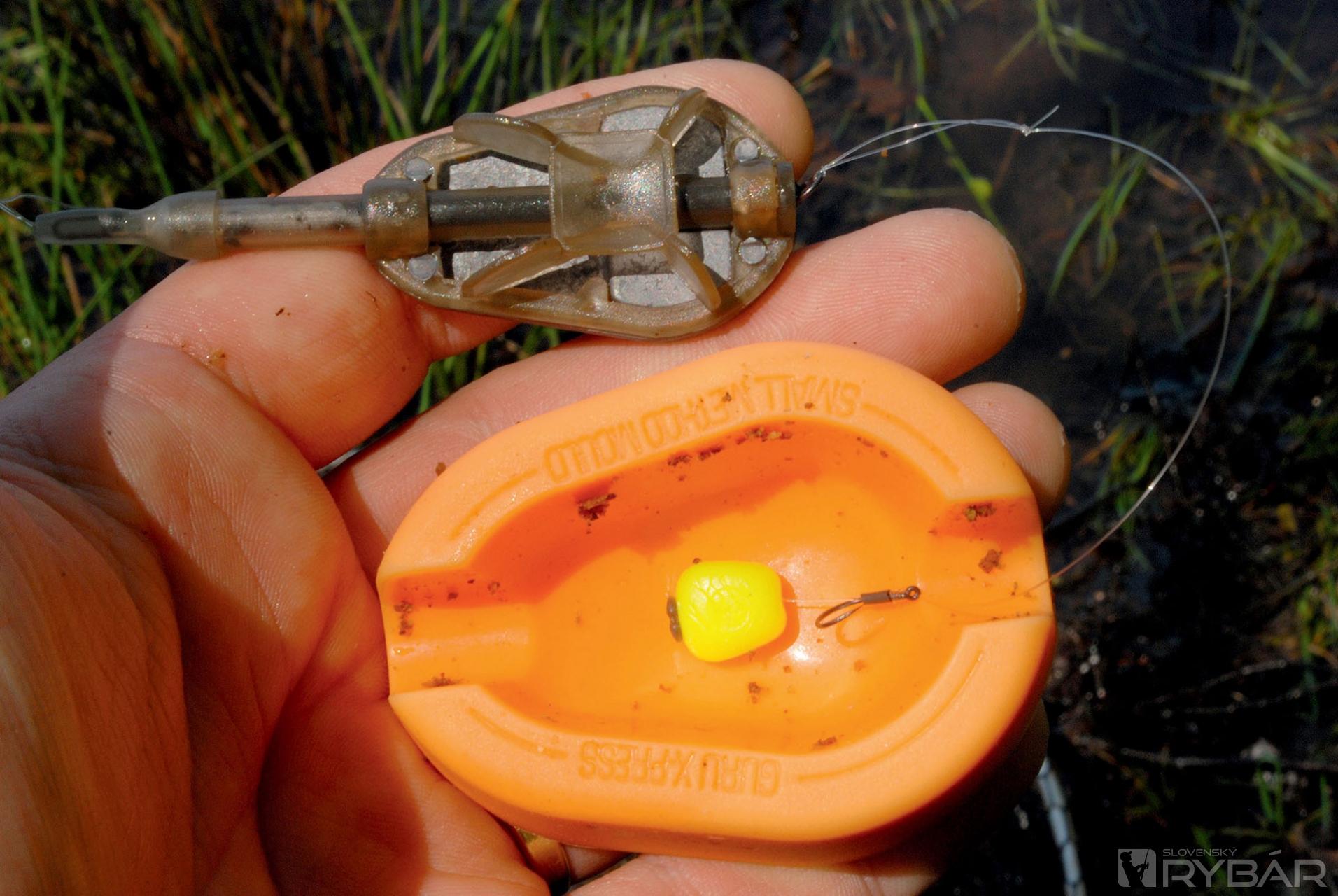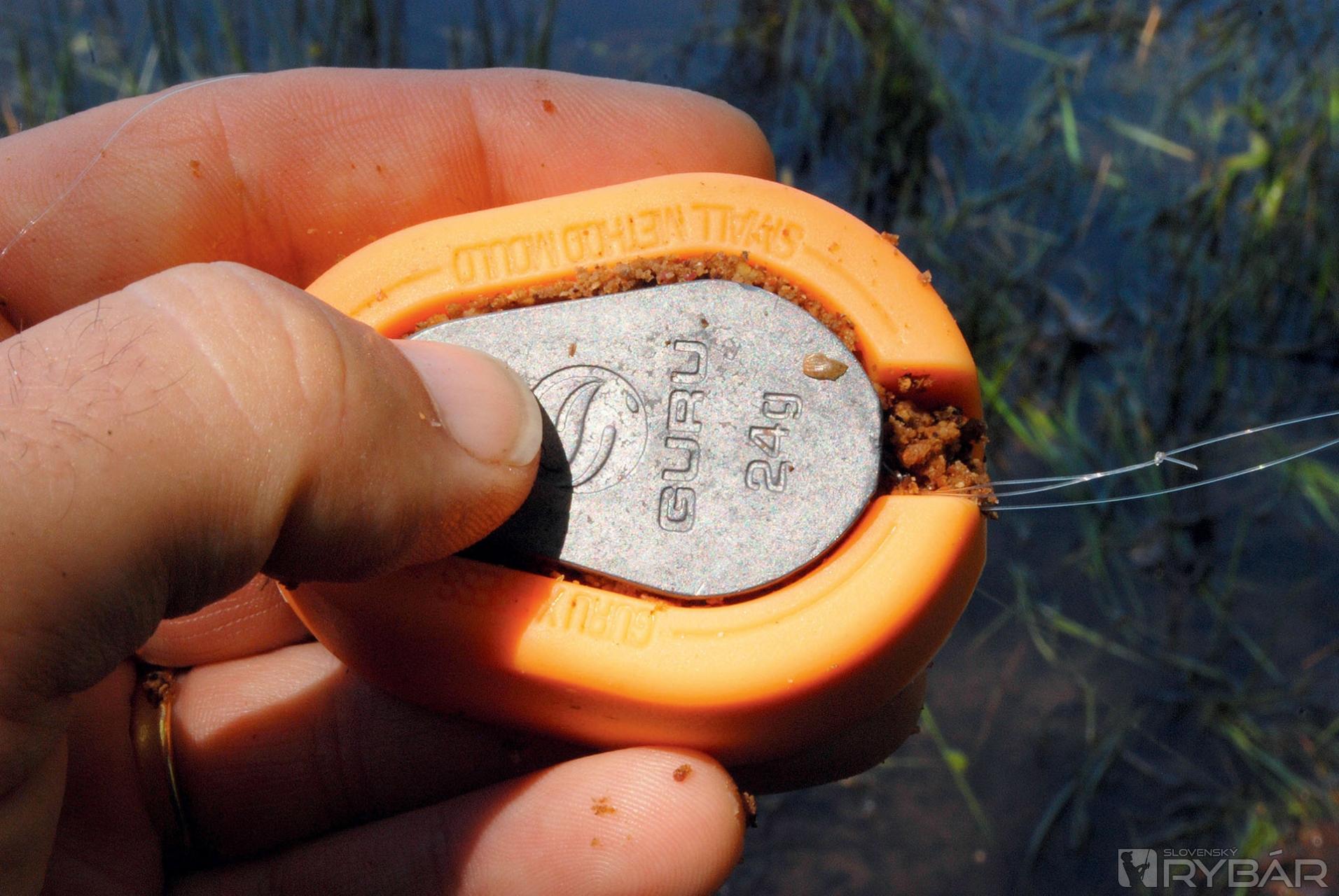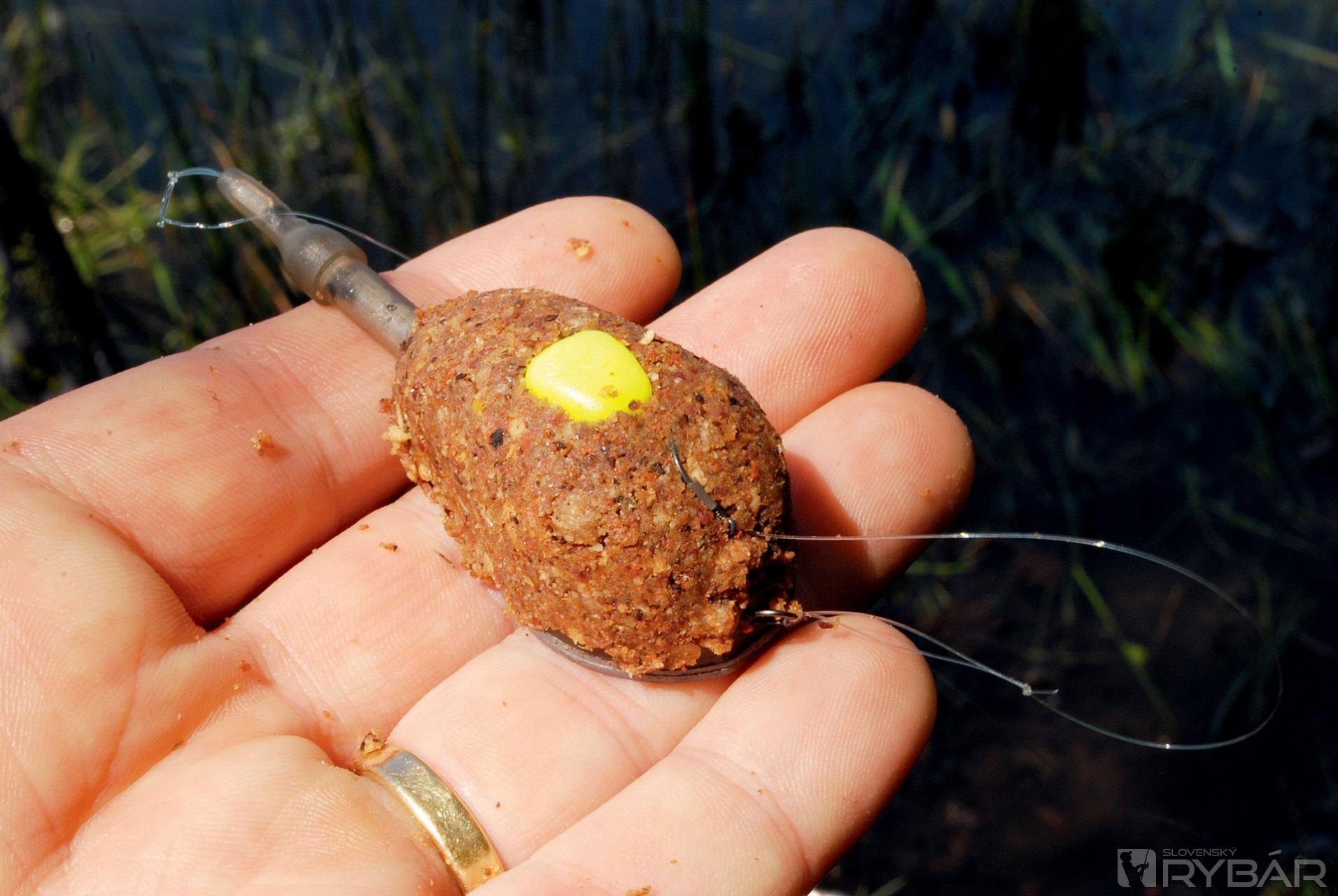 Asi po pol hodine som dostal prvý seriózny záber. Malý, asi 1,5-kilový kaprík bojoval ako čert. V priebehu dopoludnia som z vody vytiahol ďalšie tri kapríky podobnej hmotnosti. Lovil som s klasickým kŕmidlom, ale potom som chcel vyskúšať aj druhý prút. Použil som 24 g method feeder (najmenší z radu Guru) a 10 mm boilies naviazaným na vlase, s háčikom QM1 veľ. 12 a vlascom N-Gauge 19 mm.