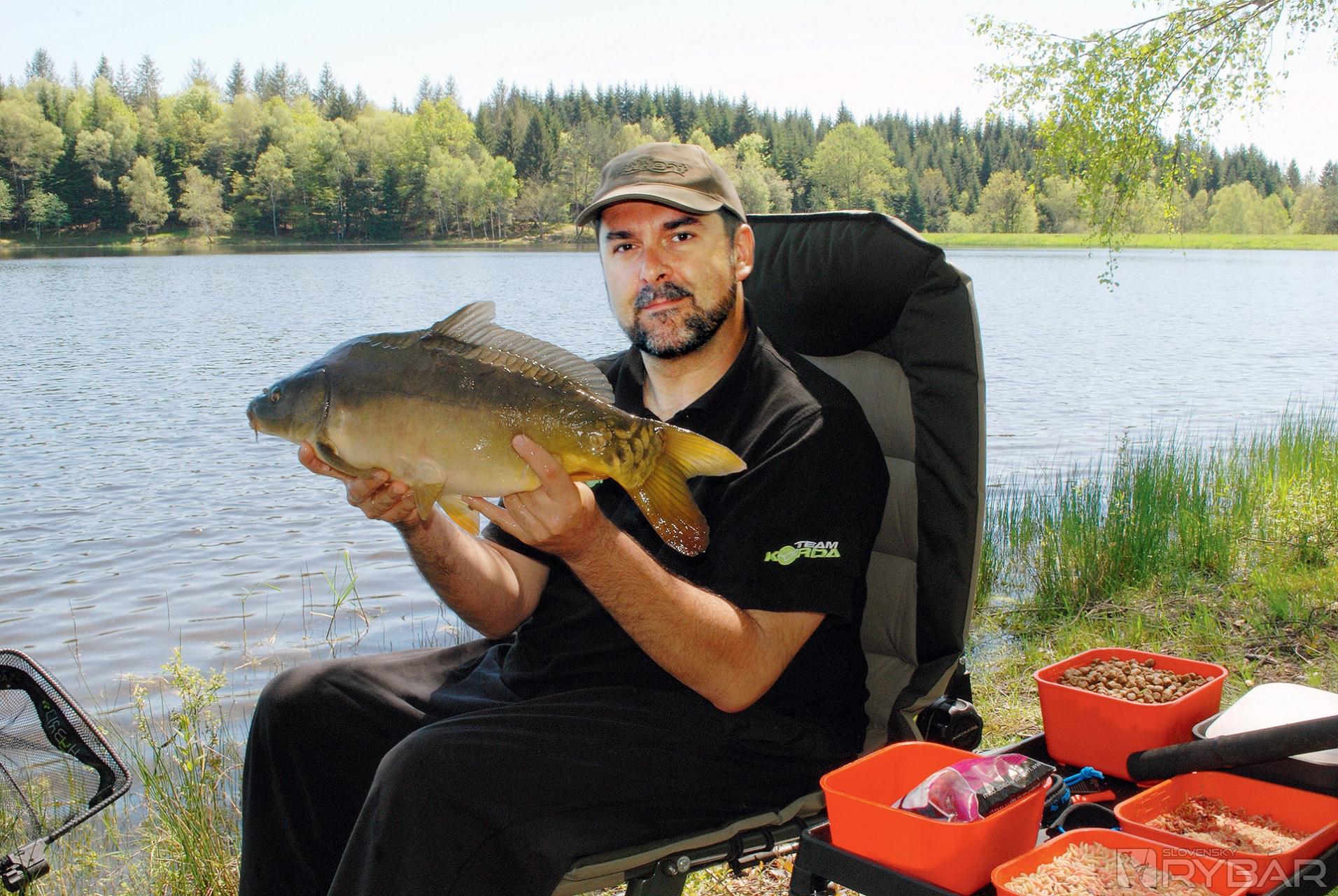 Po naplnení kŕmidla som nahodil a musím uznať, príliš som si nedôveroval. Avšak sotva som položil prút do stojana, špička sa roztriasla. Musel som nahodiť priamo nad kŕmiace sa kapry! Ryba mi venovala pekný súboj a nakoniec som ju mohol podobrať. Použil som háčik QM1 bez protihrotu, ktorý je veľmi ostrý. S týmto háčikom nestratím rybu skoro nikdy a pravdupovediac, býva často úspešnejší ako jeho kolega s protihrotom.