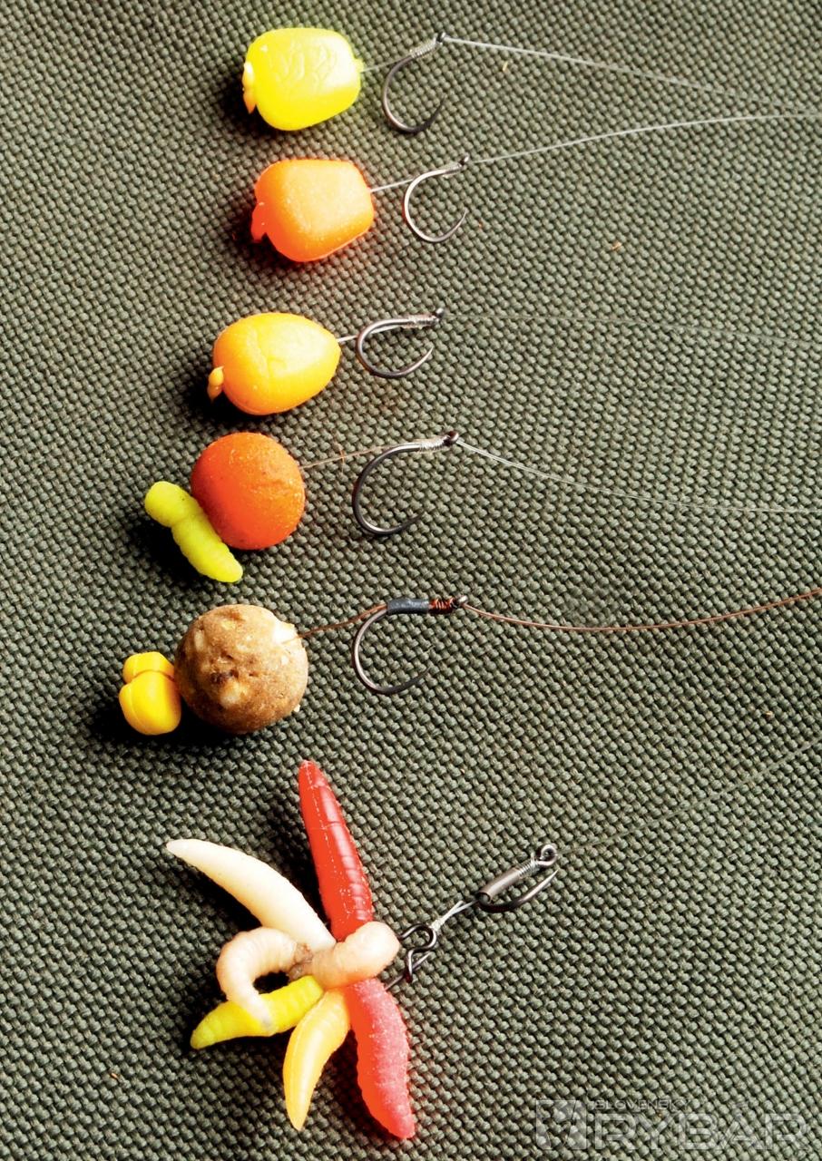 Keď býva horúco, a v ten deň teploty vystúpili na 28 °C, vždy som mal úspech s umelými napodobeninami nástrah. Prečo to neskúsiť aj dnes? Vzal som škatuľku, kde sa ukrývali umelé nástrahy rôznych tvarov a farieb. Niektoré boli potápavé, iné plávajúce, niektoré je dobré použiť samostatne, iné v kombinácii s klasickou nástrahou. Rozhodol som sa vyskúšať mikro boilies „tutti frutti“ s veľmi lesklým umelým kostným červom, ktorý moju montáž neutrálne vyvážil.