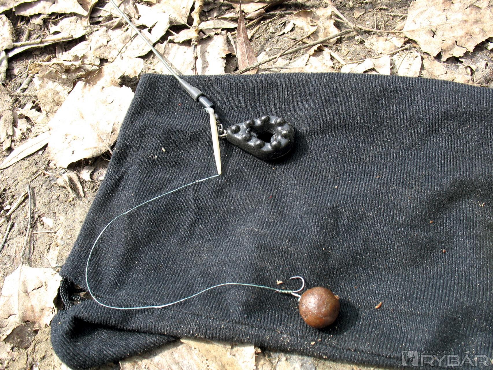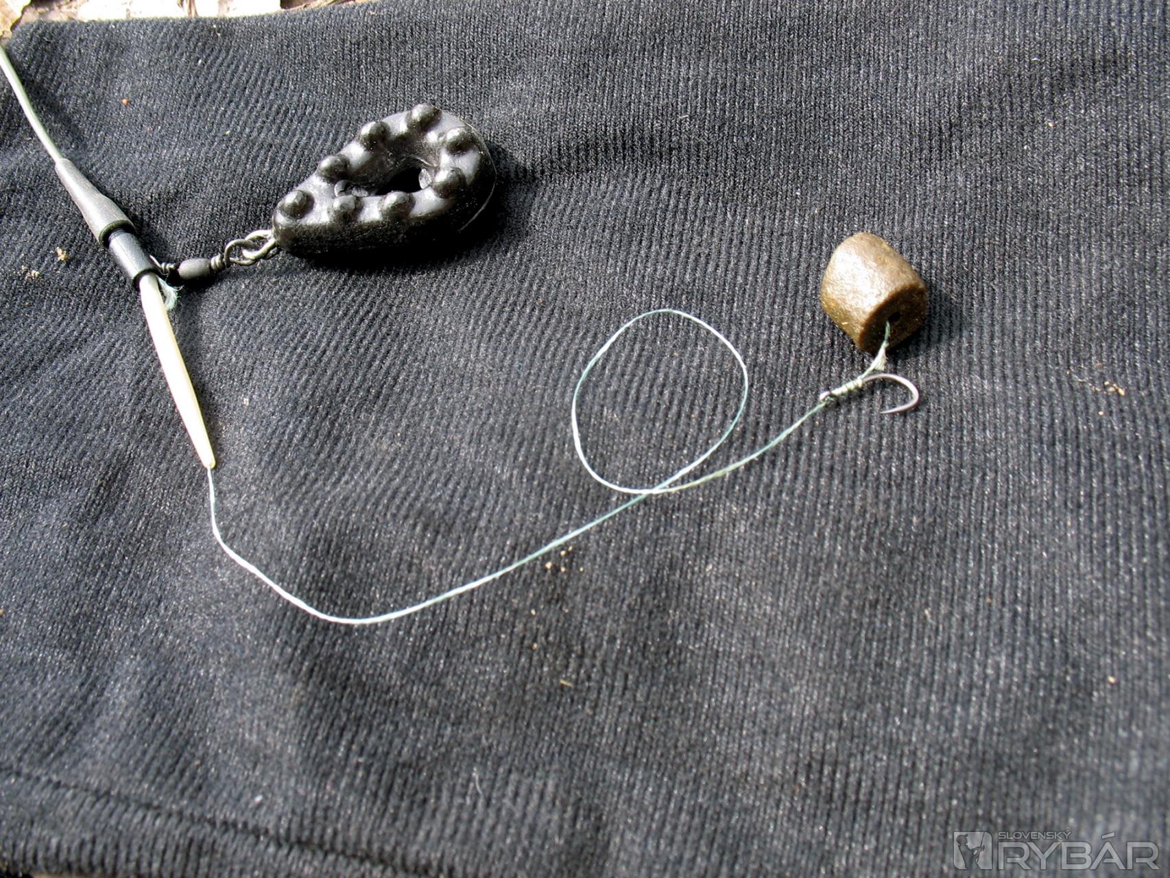 Keďže sa sústreďujem na lov väčších riečnych rýb, volím koncovú montáž tak, aby bola nástraha pod háčikom. Koncová zostava je priebežná so závesným olovom v klipe, tak ako sa to používa aj pri love kaprov. Táto koncová zostava sa pri nahadzovaní vôbec nemotá a záber prenášaný na špičku feedrového prúta je dobre čitateľný.