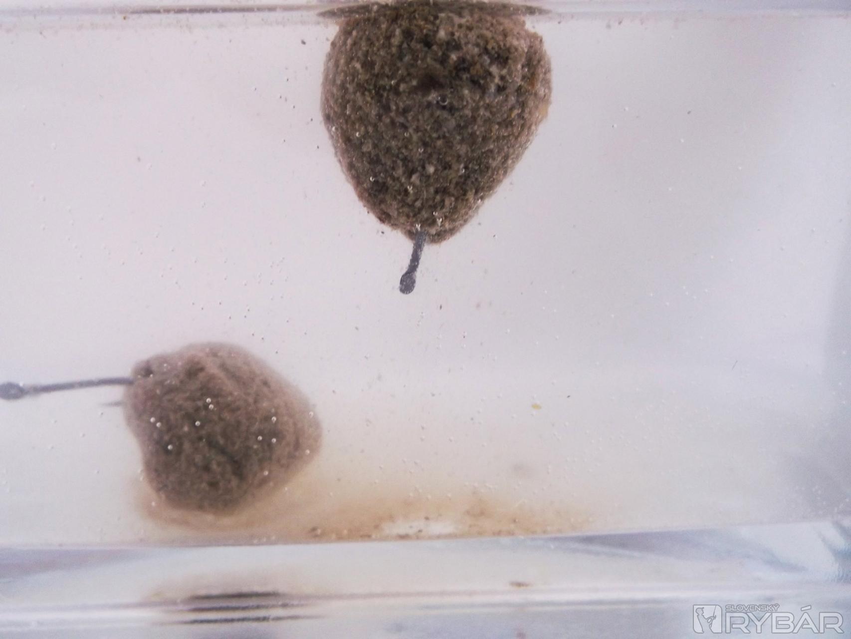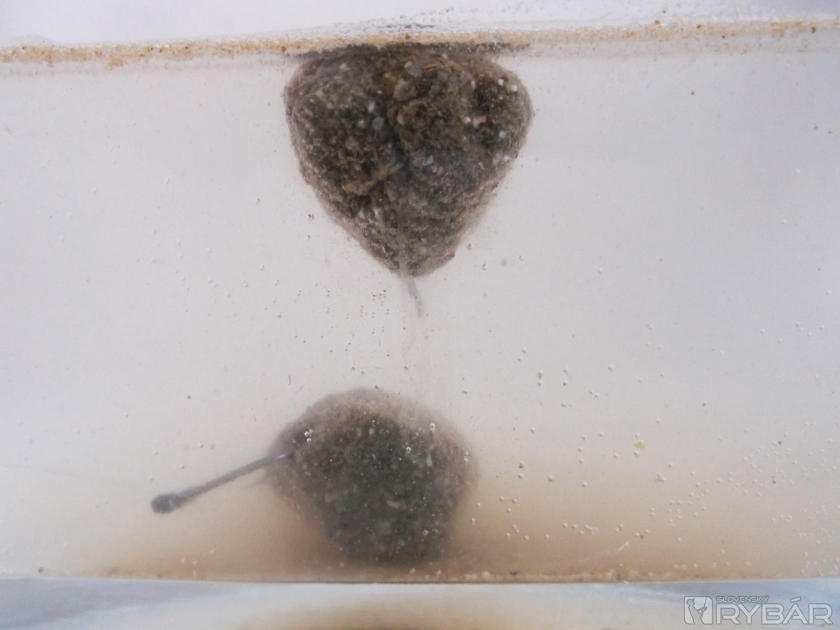 Je dôležité, aby sa vám nestávalo, že po vytiahnutí montáže máte na kŕmidle zmes čo ste nahadzovali. Veľa rybárov do krmív pridáva rôzne múky a podobné suroviny, no je to úplne zbytočné a pokazí to krmivo. Na fotkách môžete vidieť, ako má pracovať správne namiešané krmivo po vhodení do vody.