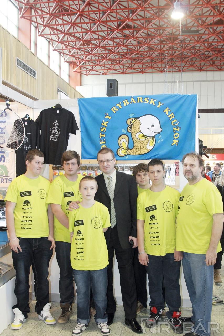 Ing. Tibor Dobiáš z Ministerstva životného prostredia SR s deťmi a vedúcim detských rybárskych krúžkov Jaroslava Helera.