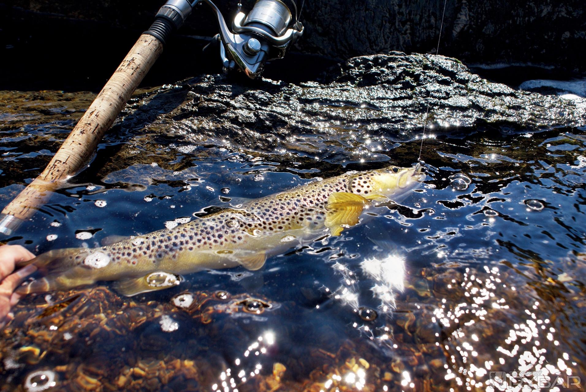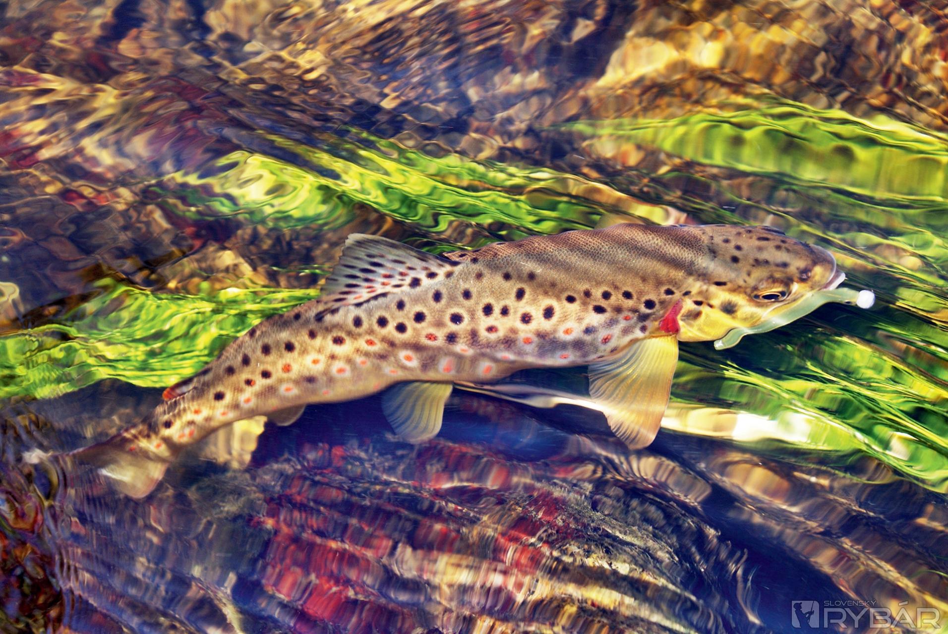 Pstruh ako správny manekýn čaká na fotku a potom vyráža. Ledva stačím zachytiť v letku prút. Je to však posledný nápor síl. Po chvíli končí v mojej ruke.