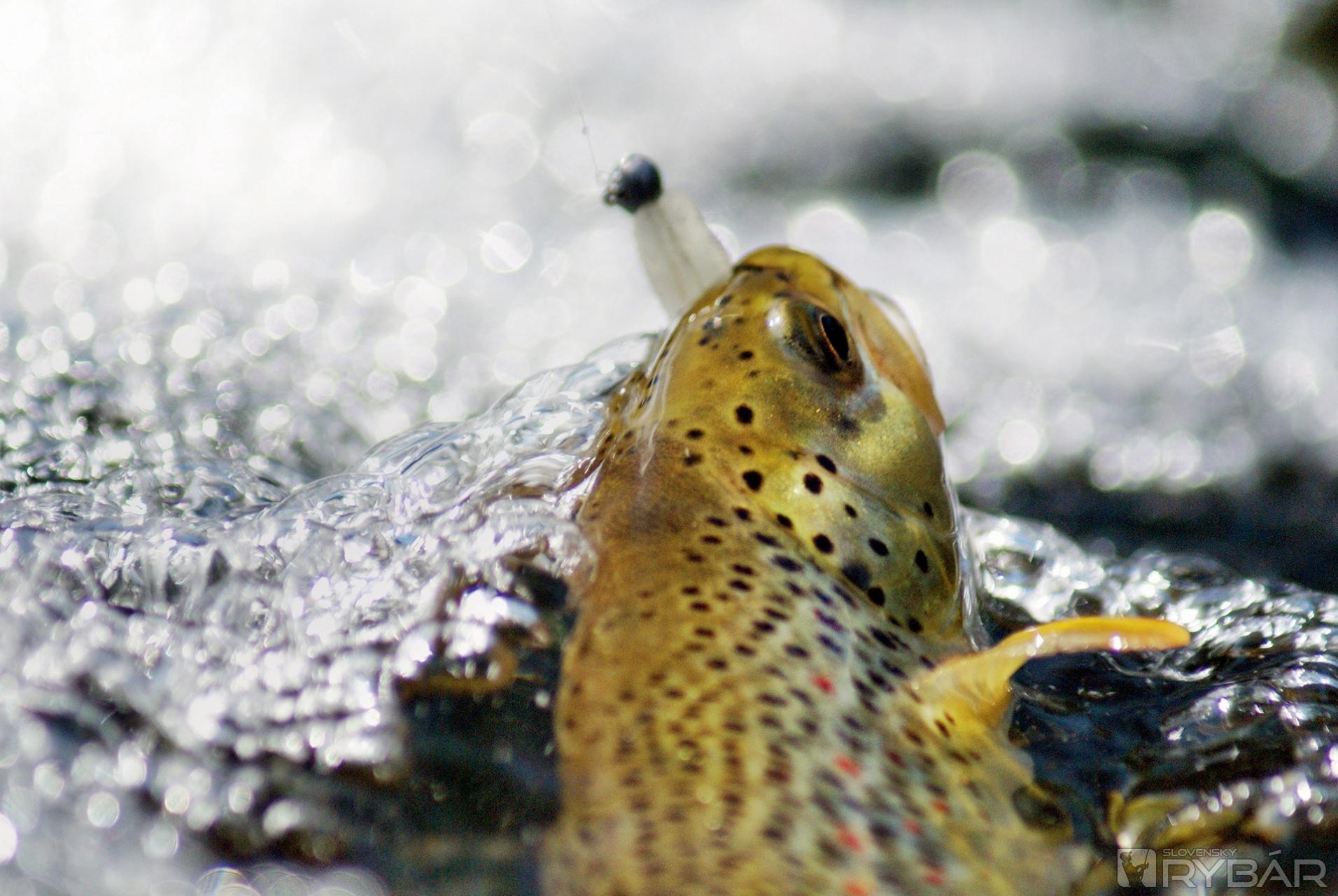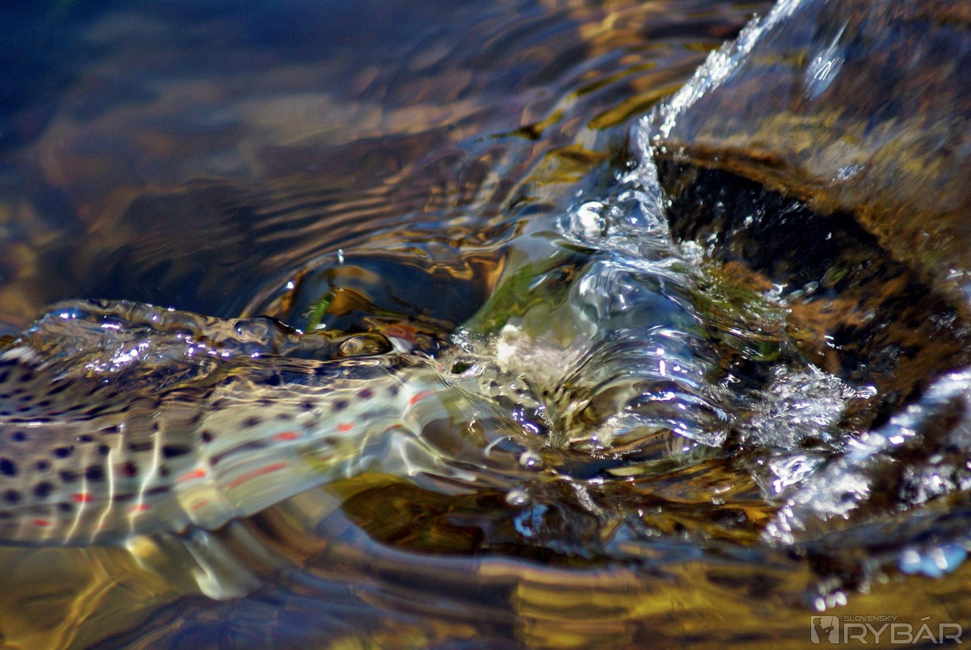Vlasec zvoní o hladinu ako napätá tetiva luku. Predsa len však privádzam rybu tesne na hladinu. Papuľka pstruha zviera smáčika a kŕčovito lapá vo vzduchu. Následný krkolomný skok dvíha škvrnitého krásavca nahor. Hladina exploduje pod dopadom pstružieho tela. Spolu so striekajúcou vodou sa uvoľňuje aj háčik. Ryba je voľná!