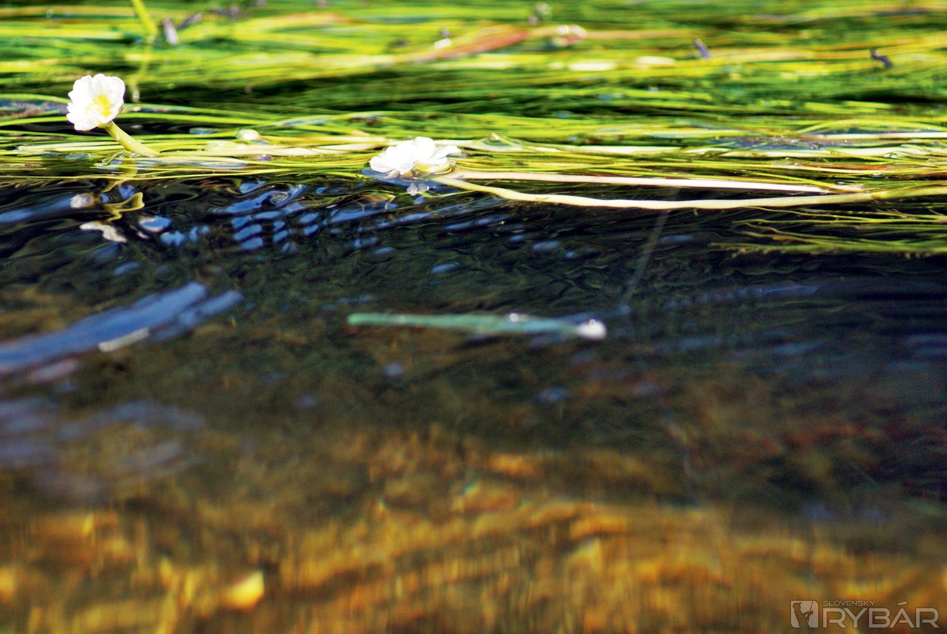 “Ako v rozprávke?! Ale ako tu má normálny rybár chytať? Všade len samé biele kvety!” Nadávam v kútiku duše. “Nie je ani kam nahodiť!” Pritom si dobre všímam, že práve v “oknách” medzi kvitnúcimi močiarkami je vidieť aktivita rýb. Ideálne stanovište pre pstruhy. Stačí sa len vynoriť, schmatnúť podenku alebo potočníka plávajúceho po hladine a potopiť sa do chladivého tieňa močiarky.