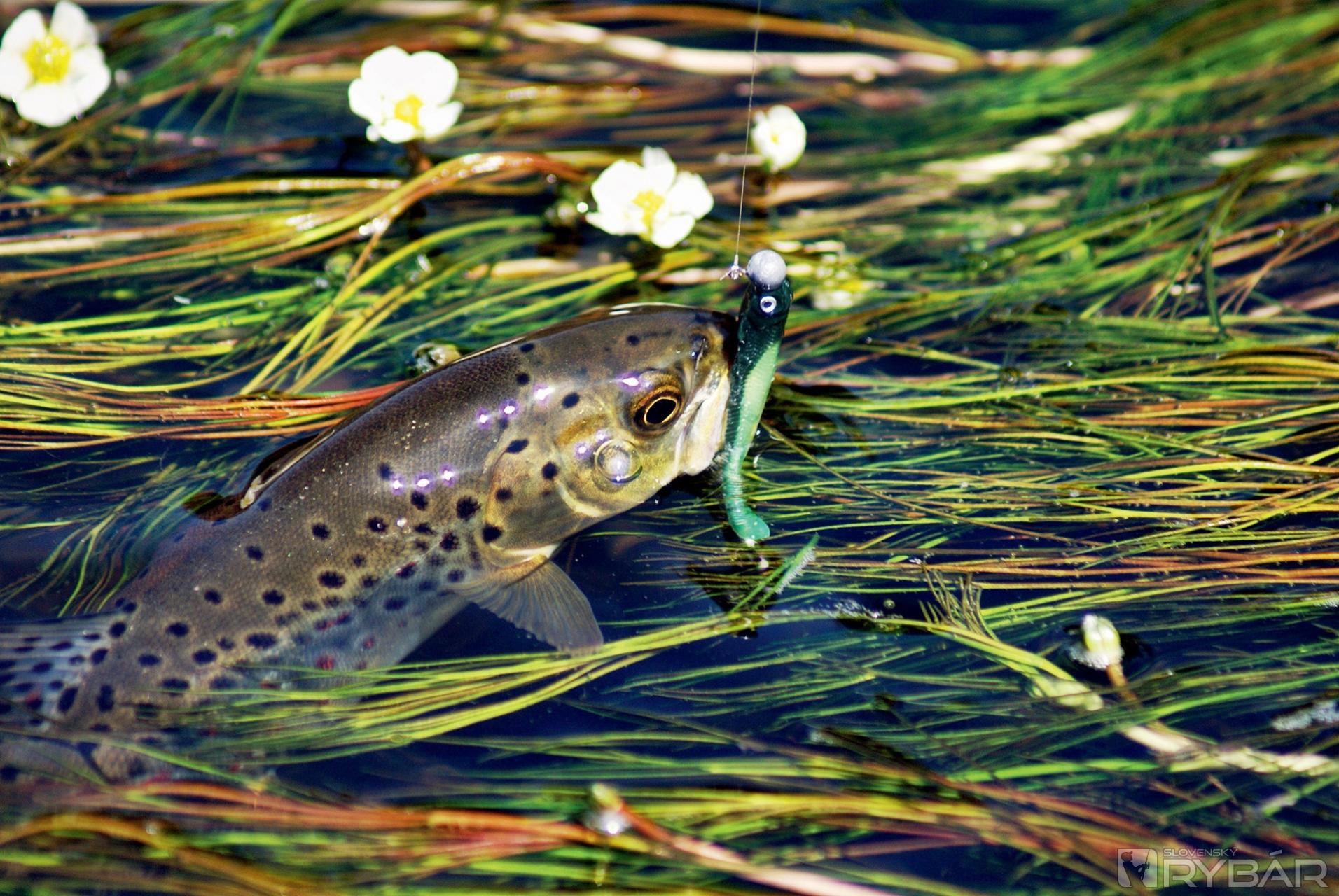 Ťažko povedať, kto zažíva väčšie zľaknutie a kto väčšie prekvapenie, ale v každom prípade mám zrazu na udici pstruha. Vyšiel po chvíli klepania na smáčika s takou vervou, že mi skoro vytrhol udicu z rúk! A teraz by sa chcel ešte ukrývať vo vodných porastoch? Nikdy! Tam ho nepustím! Zdvíham špičku prúta do výšky, aby som znemožnil rybe podísť pod stonky vodných rastlín.