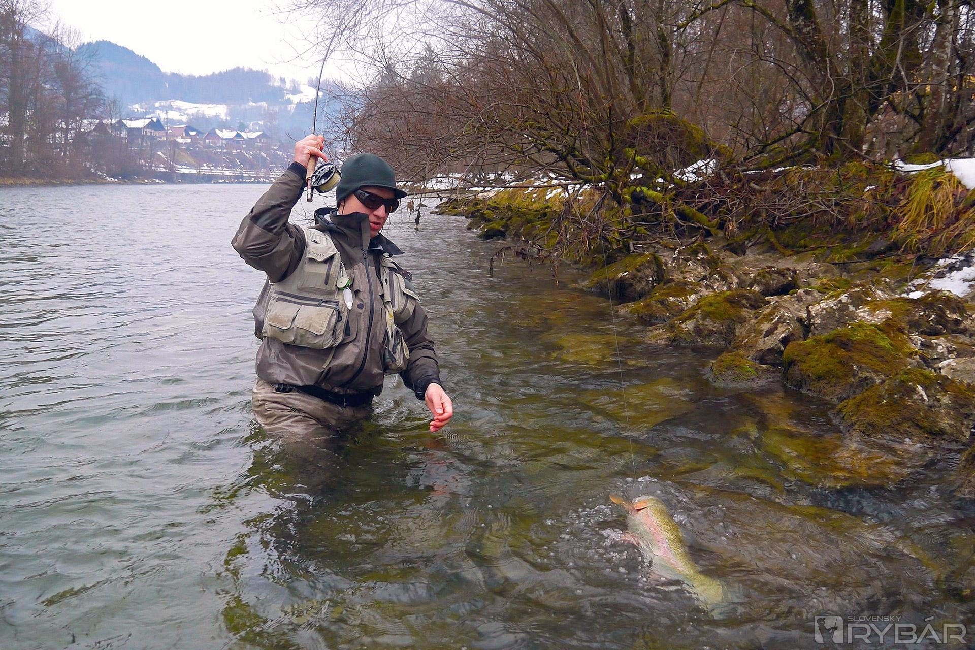 Ako má táto časť vyzerať, bolo už viackrát opísané. Tu by som sa snáď zmienil o tom, že sa dá loviť na jednu mušku, čo je klasické francúzske poňatie, alebo na mušky 2-3, čo je zase český variant. To všetko sa odvíja od veľkosti, hĺbky a spádu koryta rieky. Ja osobne preferujem lov s 2 muškami, čo sa mi javí zase ako najuniverzálnejší pre samotnú prezentáciu, vedenie a kontakt s muškami. Samozrejme, môžeme použiť aj tri mušky na nadväzci a to hlavne vo väčších a hlbších riekach.