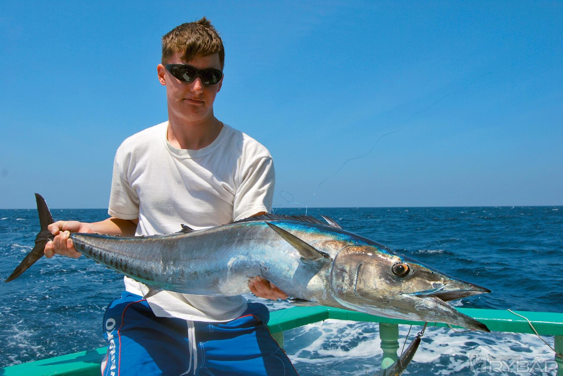 Zo strechy lode začal chytať Martin s Matejom. Bolo to druhé Maťove nahodenie, keď sme začuli jemné puknutie. Jeho udica sa zlomila pri druhom očku od špičky. Bolo to pre zle zabalenú udicu, ale tiež následok nedôstojnej manipulácie personálu letiska s našimi tubusmi. Kým si Maťo prehadzoval navijak na rezervný prút, tak to už Martin stál široko rozkročený v záklone a snažil sa pribrzdiť unikajúcu rybu. Martin bol po prvýkrát na tropickej rybačke, slabo dotiahol brzdu navijaka a umožnil bojujúcej rybe dostať sa ku dnu medzi koraly, kde poľahky urezala šnúru. Utiekla aj s nástrahou.