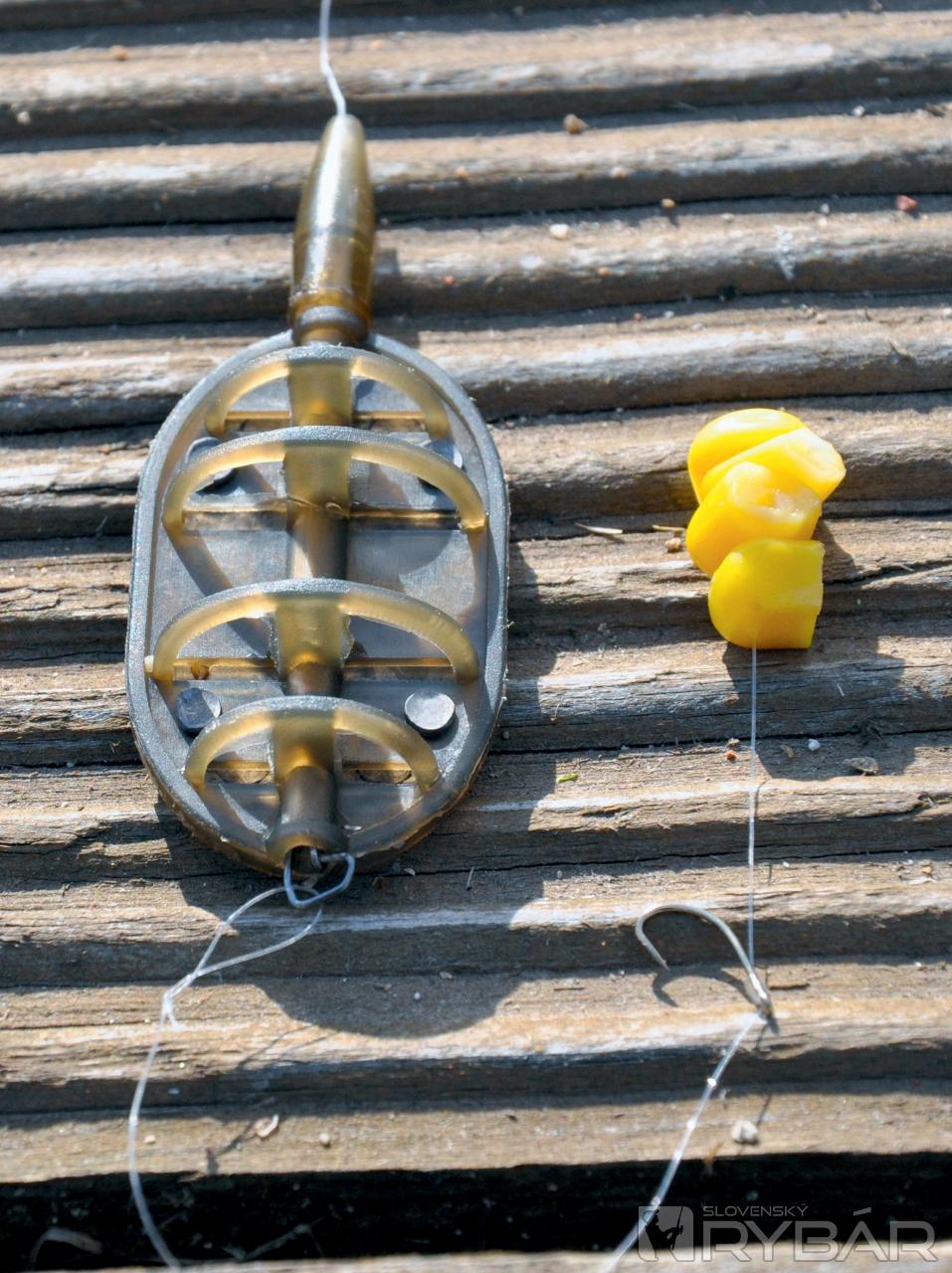 Teraz sa dostávame k tomu najpodstatnejšiemu a to kŕmidlu. To spolu s montážou je základ tejto techniky. Používajú sa špeciálne ploché inline aj koncové kŕmidlá s mriežkou, do ktorých sa pomocou formičky natlačí krmivo. Ďalej potrebujeme kvalitný nadväzcový vlasec, prípadne aj tenšiu šnúrku, obratlík a skvele sa hodia aj kaprárske bužírky, ktoré sa prevlečú cez obratlík, a zabránia tak krúteniu vlasca. Takmer zásadne lovím pomocou vlasovej metódy mimo háčika a používam háčiky s očkom bez protihrotu, prípadne s mikroprotihrotom. Veľkosť bohato postačí od 16 do 8 aj na veľké ryby. Ide nám predsa o relatívne jemné chytanie.