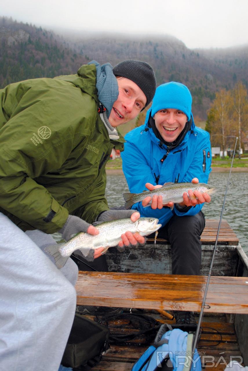Nedočkavosť, príprava a získavanie rád predchádzali otvoreniu pstruhovej sezóny na Dedinkách v podaní nás troch veľmi neskúsených prívlačiarov. V niektorých prípadoch celkom vtipnú rybačku, už počas nakladania vecí do plechového člna s elektromotorom úspešne odštartoval Martin, ktorý veľkým štýlom premieňal asi každý náhod z brehu. Chuť pokračovať v tejto paráde mňa, Mira a spomínaného Martina priam odstrelila do člna, ktorý sme sa vo vlnách a vetre snažili udržať pri brehu cca 40 až 80 metrov. V tejto vzdialenosti približne 50 rybárov „slávilo“ úspechy z mierečných dúhakov a potočákov. Veľmi úspešná strieborná rotačka dosahovala také úspechy, že sme nevnímali ani sneženie, ľadový dážď, silný vietor a zimu pod nechtami. Keď boli naše ambície naplnené (10 – 15 pstruhov na hlavu) začali sme experimentovať s voblermi a nymfami, ktoré sa tiež nenechali zahanbiť a zlákali nie jedného pstruha. Takýto začiatok sezóny by sme určite dopriali každému poctivému rybárovi a veríme, že naše začiatočnícke šťastie nebolo vyčerpané.