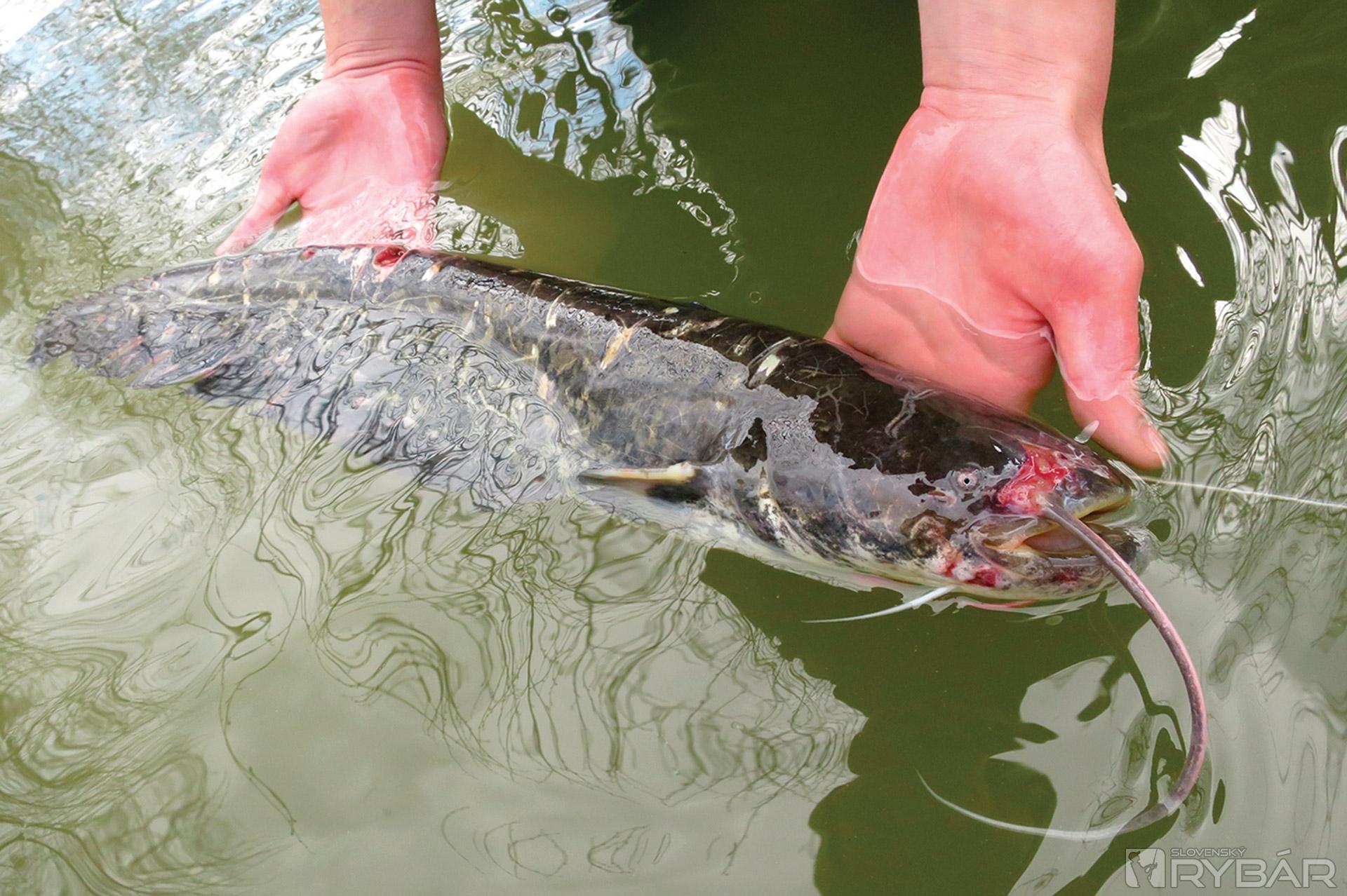 Prekvapením pri love bol sumec zjazvený od zobáku volavky.