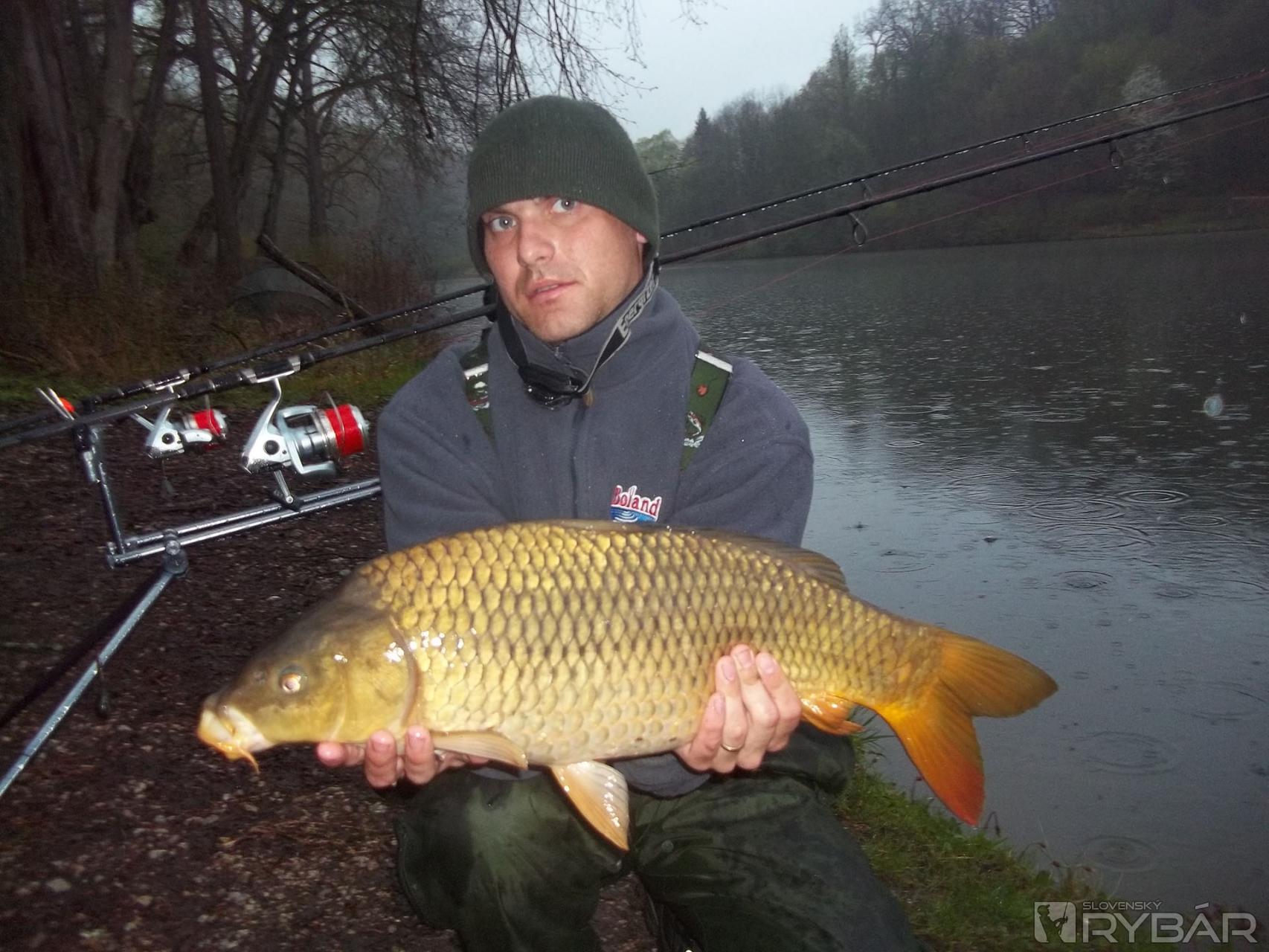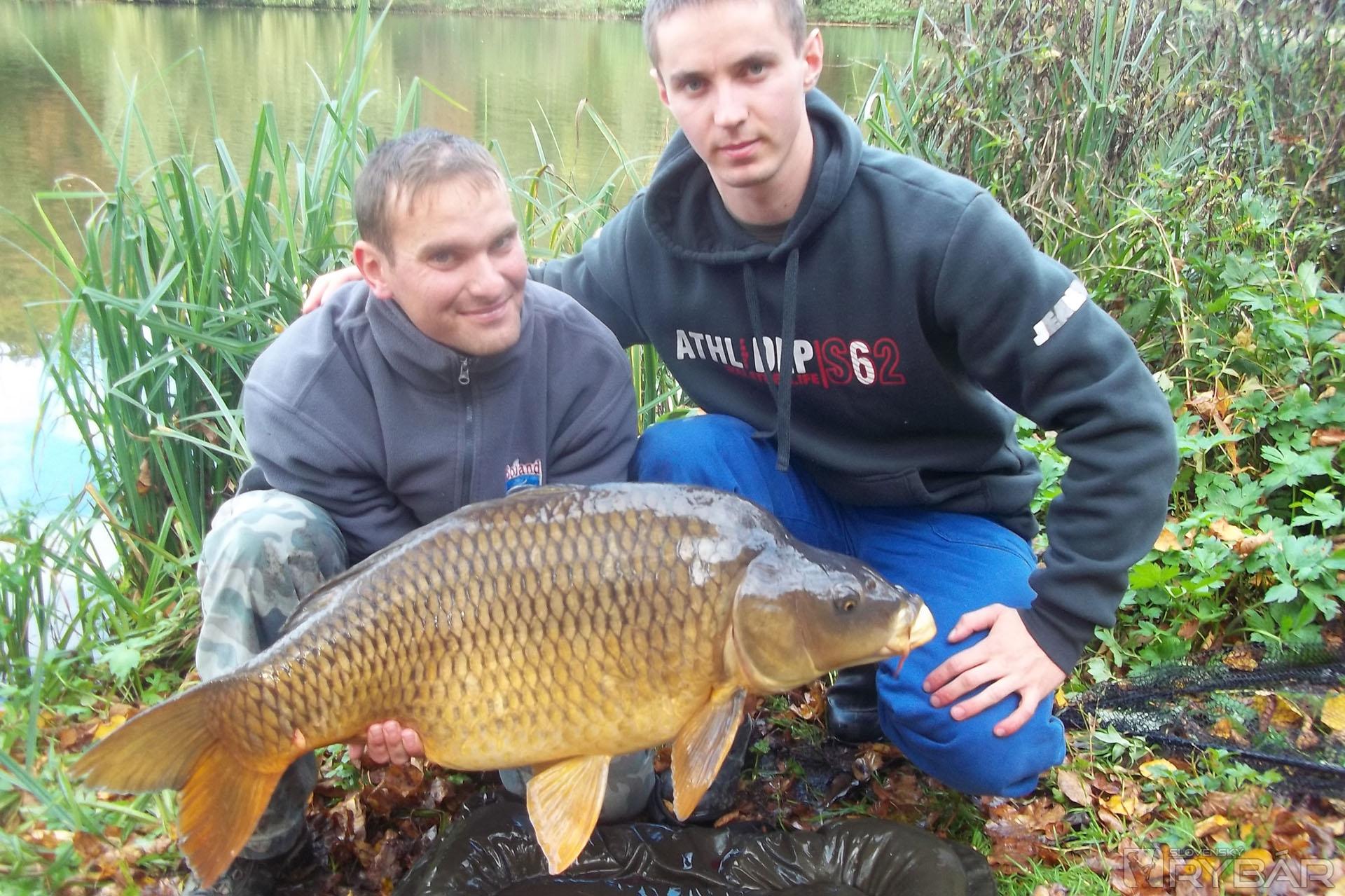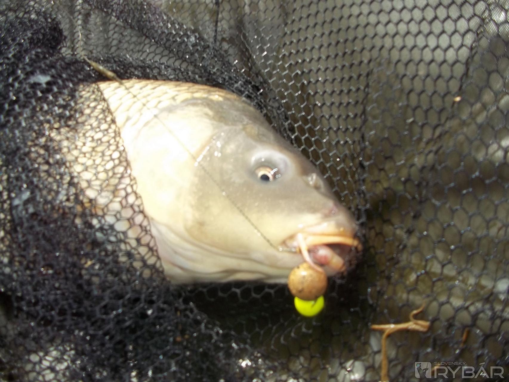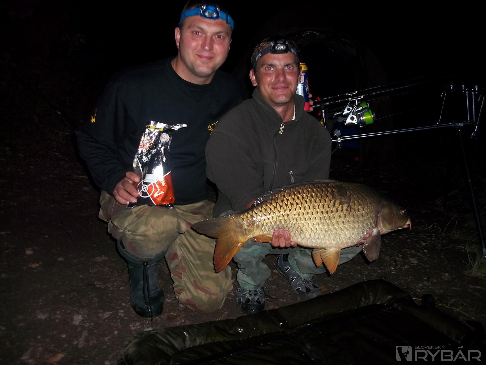 Robota nám šla rýchlo, a tak po hodinke a pol sme sa mohli podujať na zavezenie palíc. Nebolo nad čím rozmýšľať, pretože na druhej strane sme mali popadané stromy, ktoré sme osedlali našimi pascami. Netrvalo dlho a prišiel jeden prieskumný kaprík cca 5 kg Tak sme vedeli, že sme ich trafili. Do večera sa nám podarilo dostať niekoľko takýchto kaprov. Začal som teda špekulovať, ako ich zabrzdiť a vyčkať si na toho väčšieho jedinca. Tak som pod háčik začal našívať po dve guľôčky boilies. Trochu to zamĺklo, ale ja som vedel, že teraz sa mi podarí niečo väčšie. Po pár hodinách prišiel kapor s hmotnosťou 10 kg. Pred nami bola prvá noc. Poprevážal som všetky palice a dodatočne prikŕmil. Unavení sme si ľahli do bivaku. Len čo sme zaspali, zrazu – pip pip pííííp! Erik, je tam! Po krásnej zdolávačke si položil kapra s hmotnosťou 7 kg. Pre neho to bol zážitok, keďže on je feedrista a chodieva na pleskáče, či iné podobne ryby.