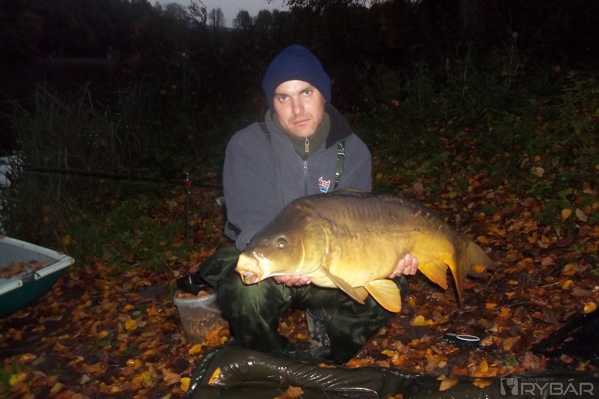 Práve sa púšťam do jedla, keď znova ten krásny zvuk signalizátora. Swinger prilepený o prút. Cievka na mojej Ultegre pomaličky cvaká ako divá. Prisekávam a opäť cítim, ako ryba smeruje do toho istého bodu, ako tá pred tým. Nečakám, sadám do lode a idem po neho. Uháňam ako maratónec. Prichádzam nad rybu a znova ju cítim na pevno. To snáď nie!!! Nervy pracujú a ja sa snažím kapra vyslobodiť. Konečne povolil a ja cítim ťah, ako nikdy predtým. Ryba má silu ako kôň. Doslovne si robí so mnou, čo chce. Snaží sa dostať do prekážky. Tie okamihy boli neskutočné. Pod hladinou sa mi ukazuje obrovský tieň kapra. Stále sa snaží dostať do kríkov. Konečne ho dostávam na voľnú vodu. Aj ryba sa pomaly upokojuje. Na tretí pokus ho už mám v podberáku. A môj mohutný výkrik „je tam“ sa nesie po celom jazere. Pomaličky sa vraciam na breh a teším sa ako malý chlapec. „Erik, ten má minimálne pätnásť“.