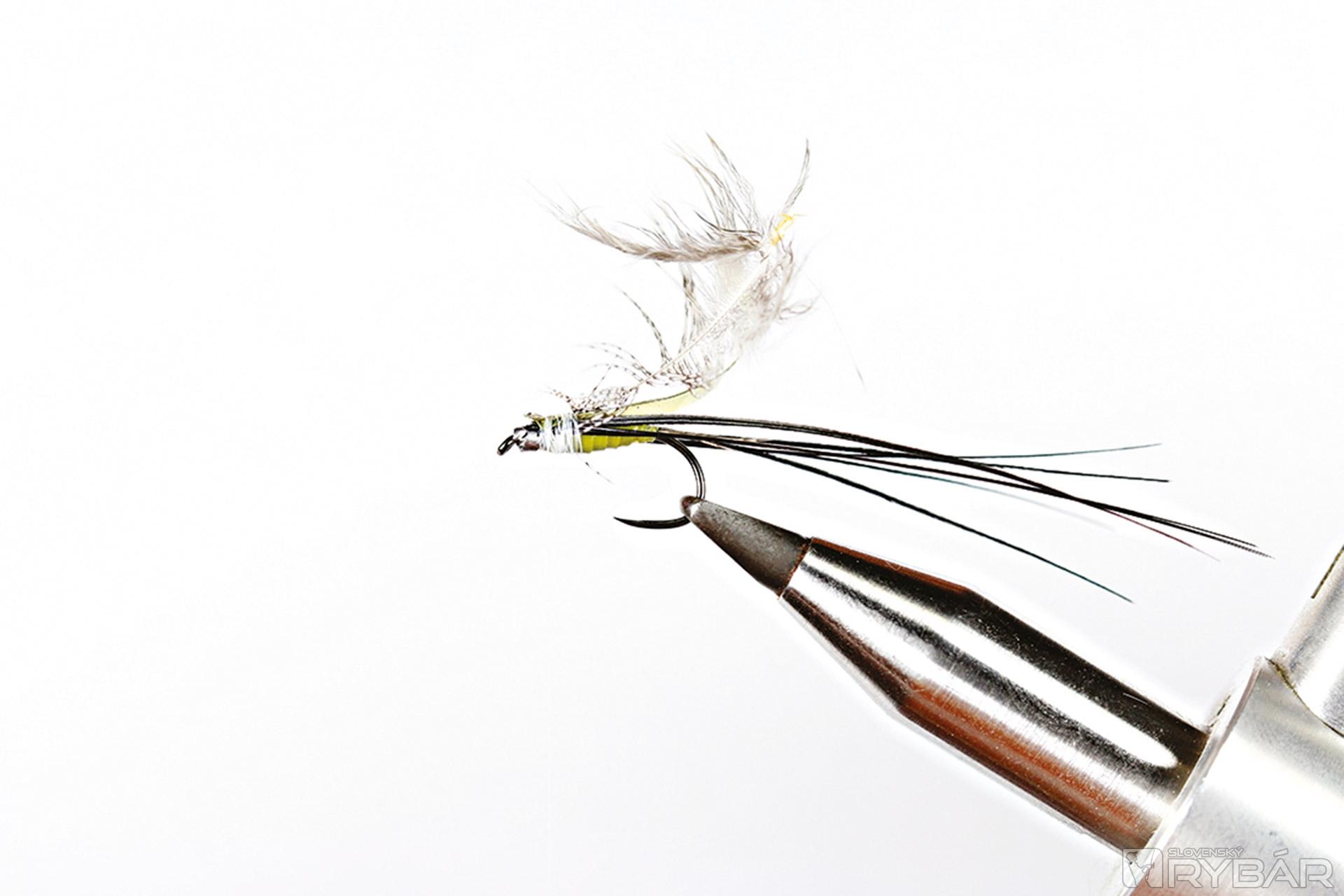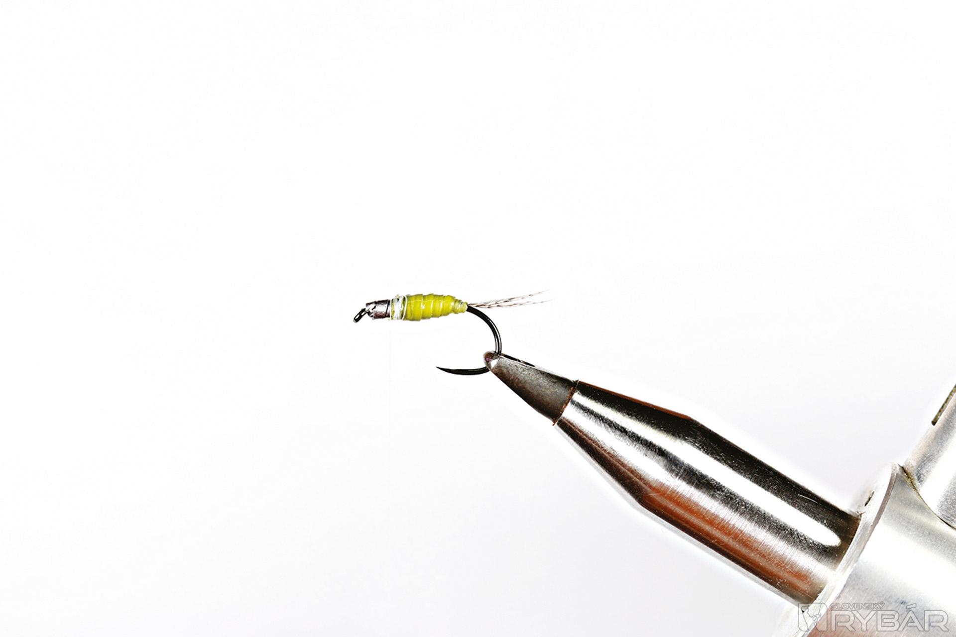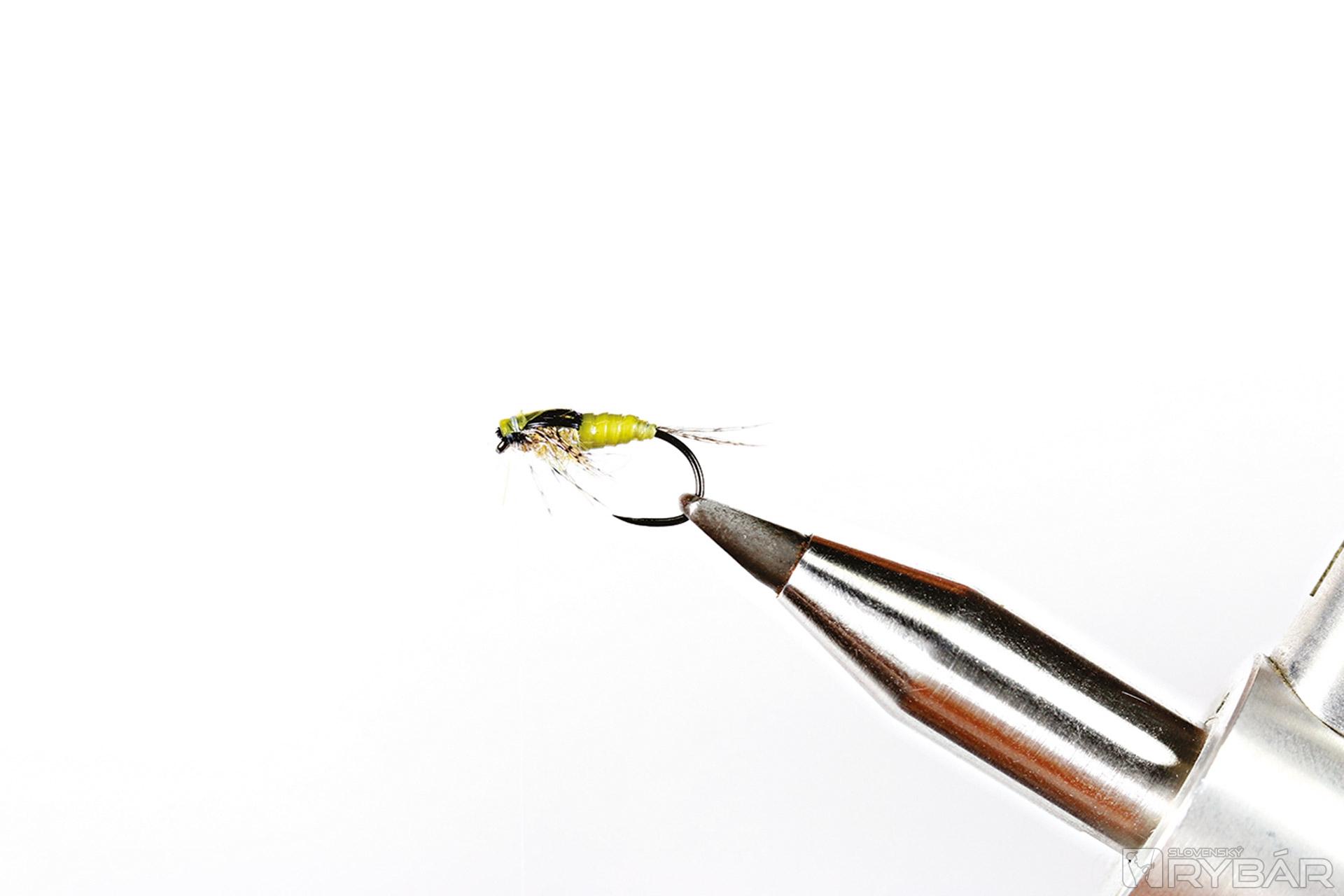 Hojne sa vyskytujúca nymfa a dnes si naviažeme jej napodobeninu. Úspešná po celý rok, použiteľné sú všetky veľkosti, vrátane najmenších, vhodných na lipne. Telíčko viažem z vynikajúceho materiálu flexibody, ktorý si nastrihám na potrebnú šírku. Dobre sa z neho robia článkované telá mušiek a je dostupný v mnohých farbách. Chytám obvykle s dvoma muškami rôznych farieb, prípadne veľkostí. Dobré je skúsiť v tandeme s mokrou muškou.