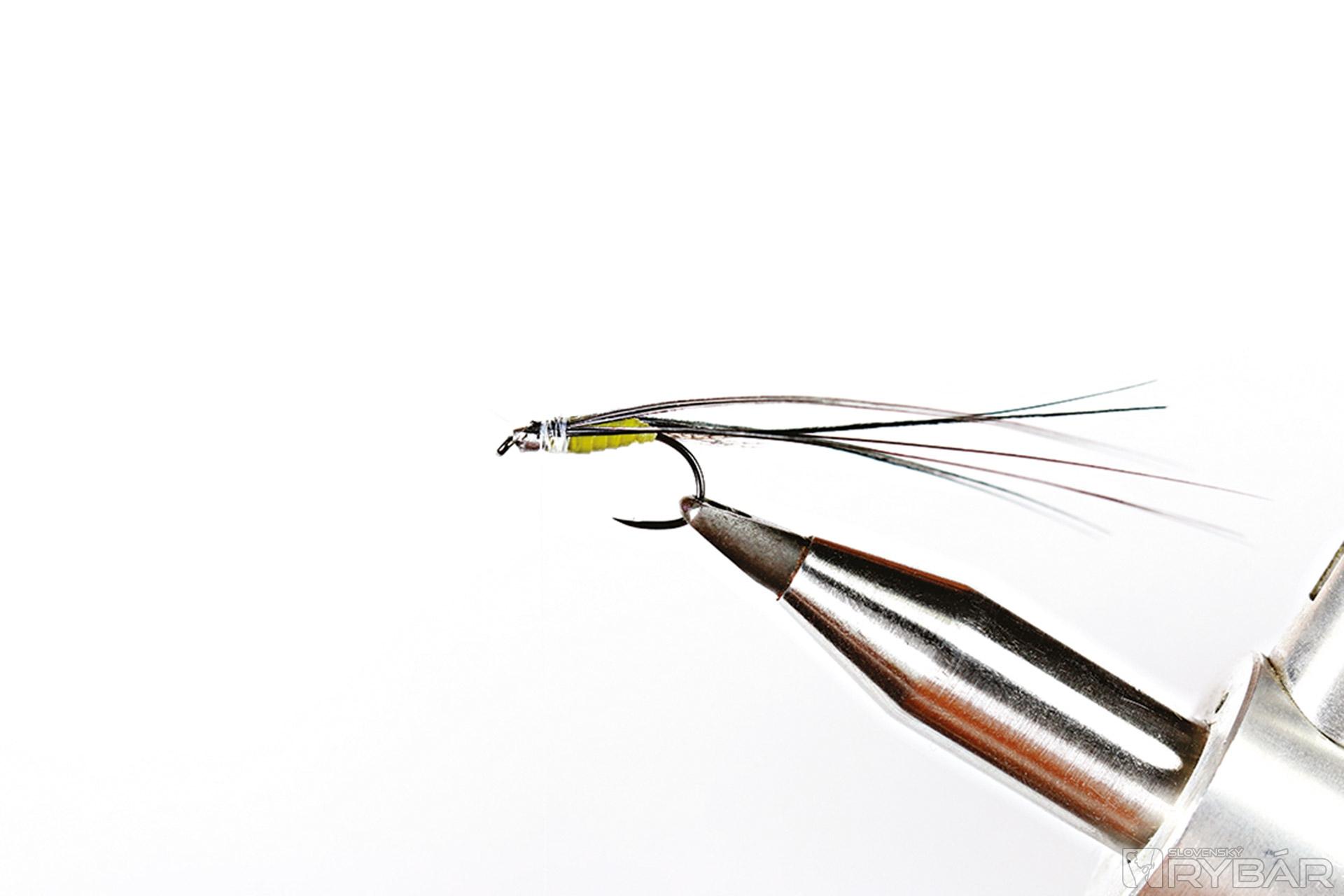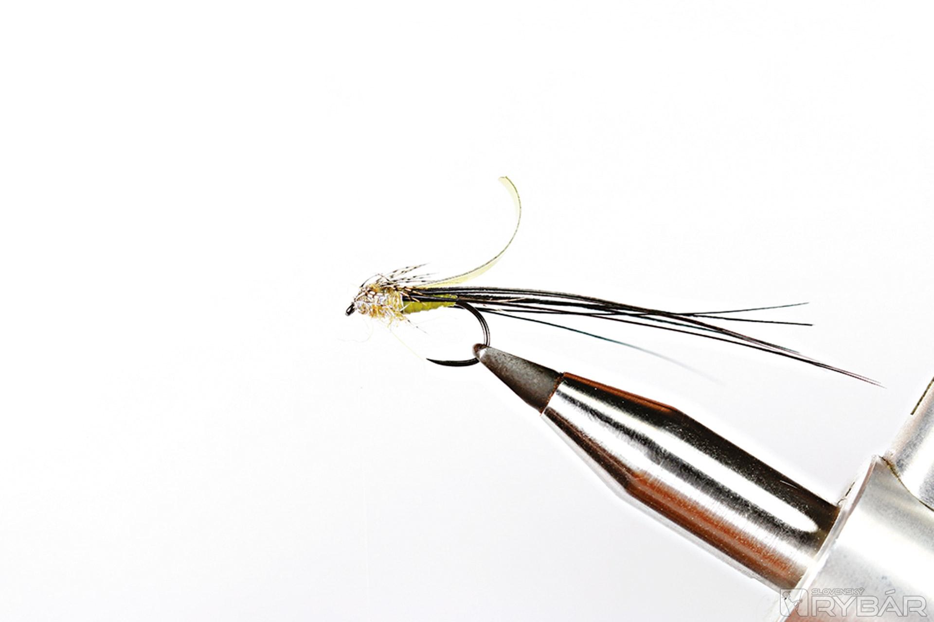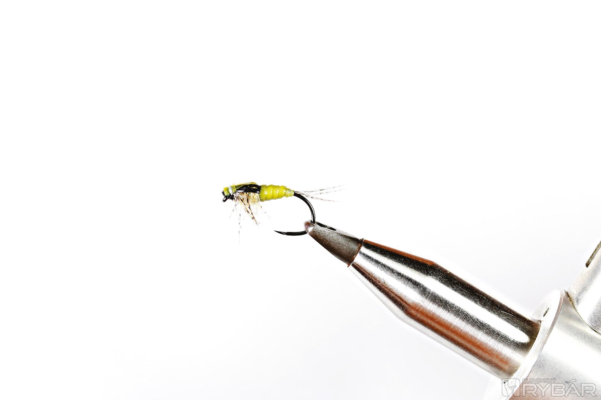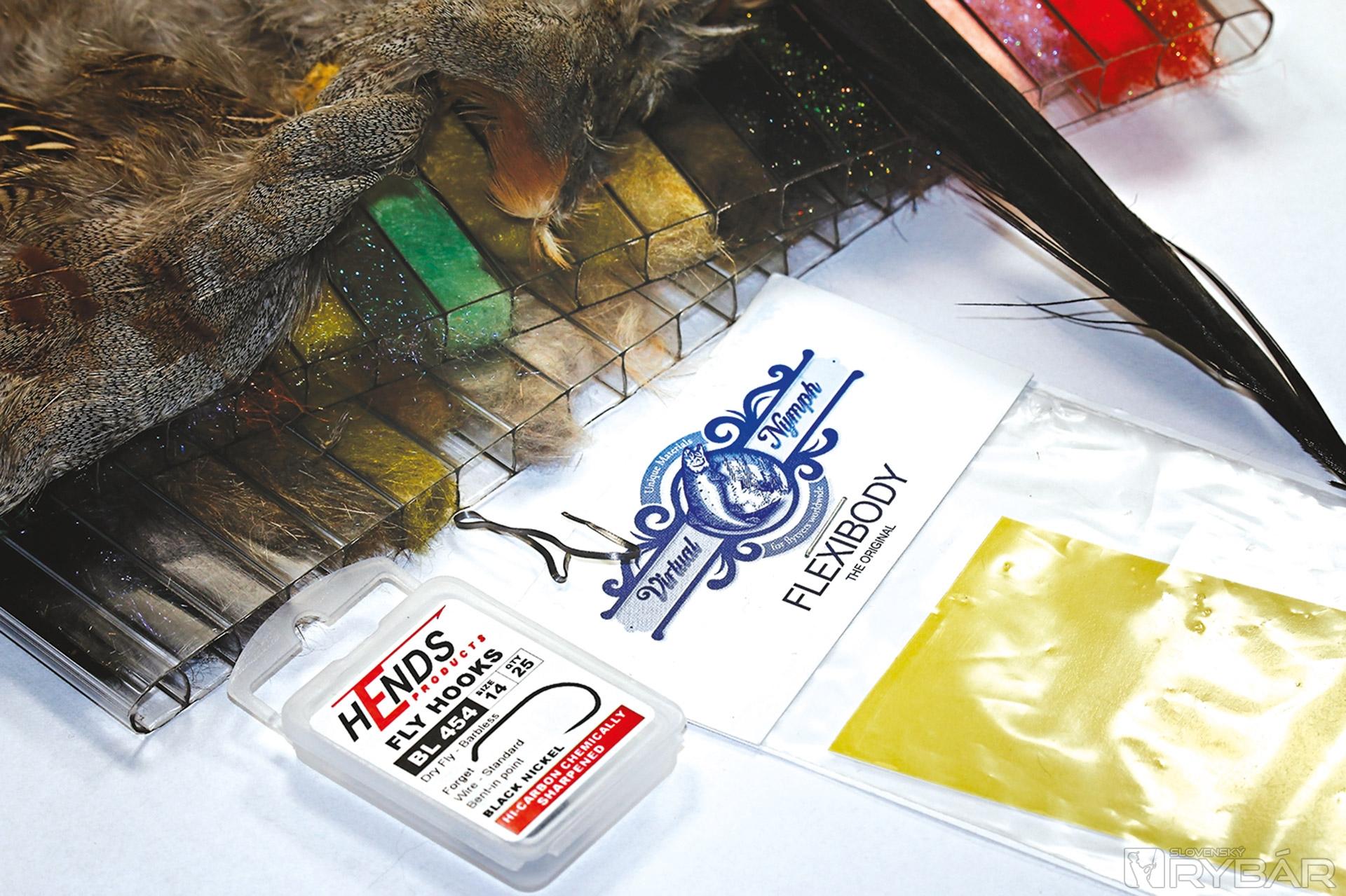 Hojne sa vyskytujúca nymfa a dnes si naviažeme jej napodobeninu. Úspešná po celý rok, použiteľné sú všetky veľkosti, vrátane najmenších, vhodných na lipne. Telíčko viažem z vynikajúceho materiálu flexibody, ktorý si nastrihám na potrebnú šírku. Dobre sa z neho robia článkované telá mušiek a je dostupný v mnohých farbách. Chytám obvykle s dvoma muškami rôznych farieb, prípadne veľkostí. Dobré je skúsiť v tandeme s mokrou muškou.