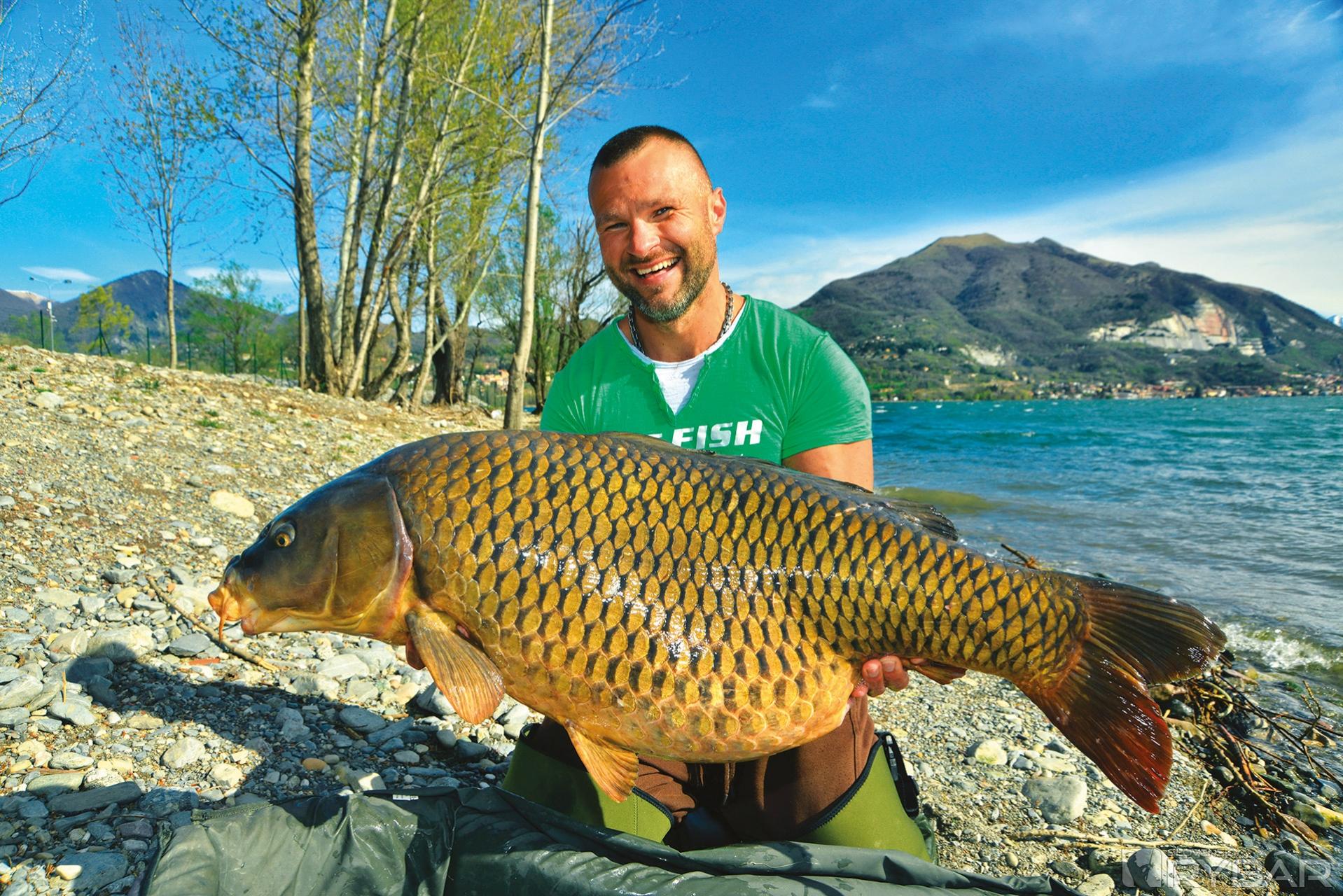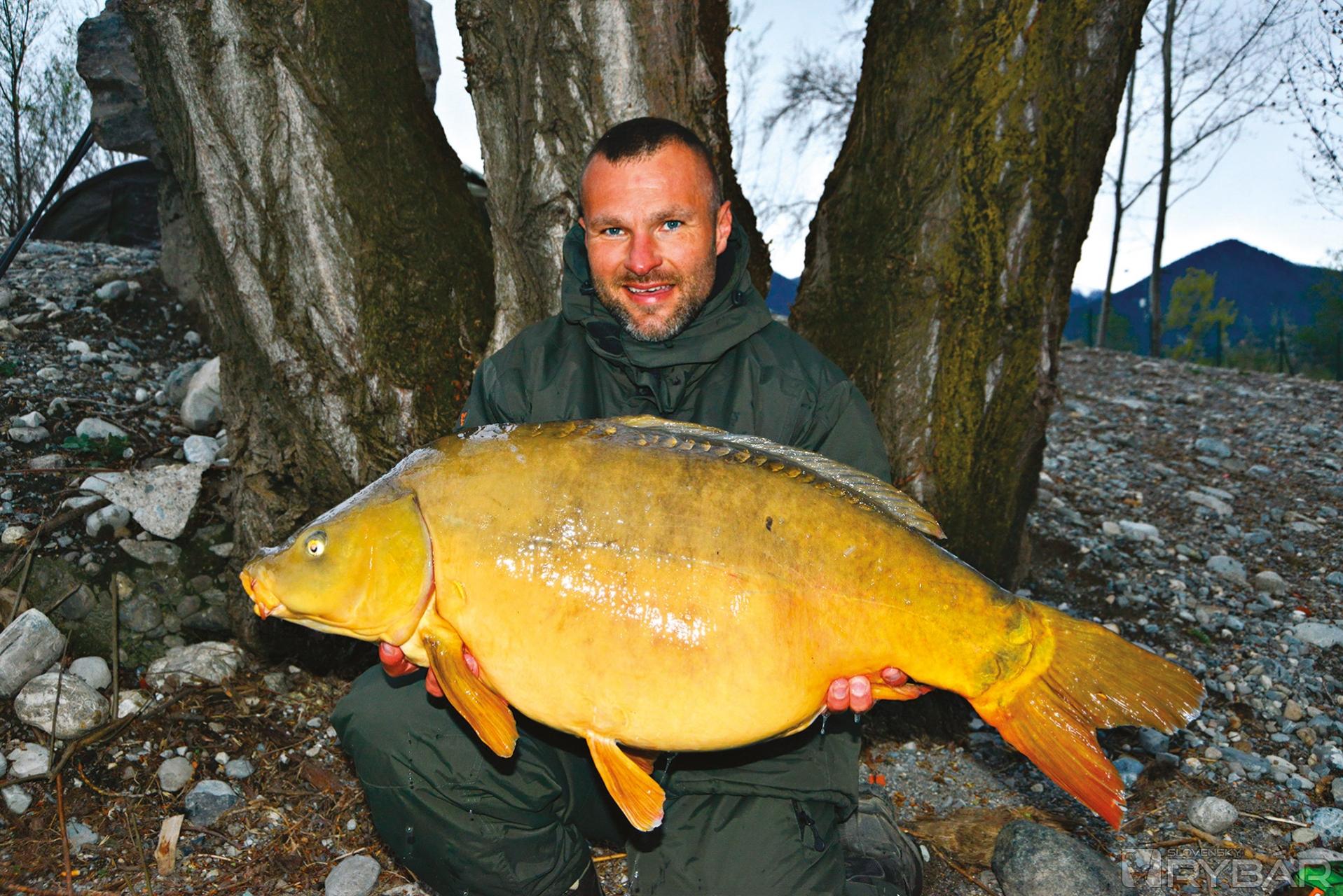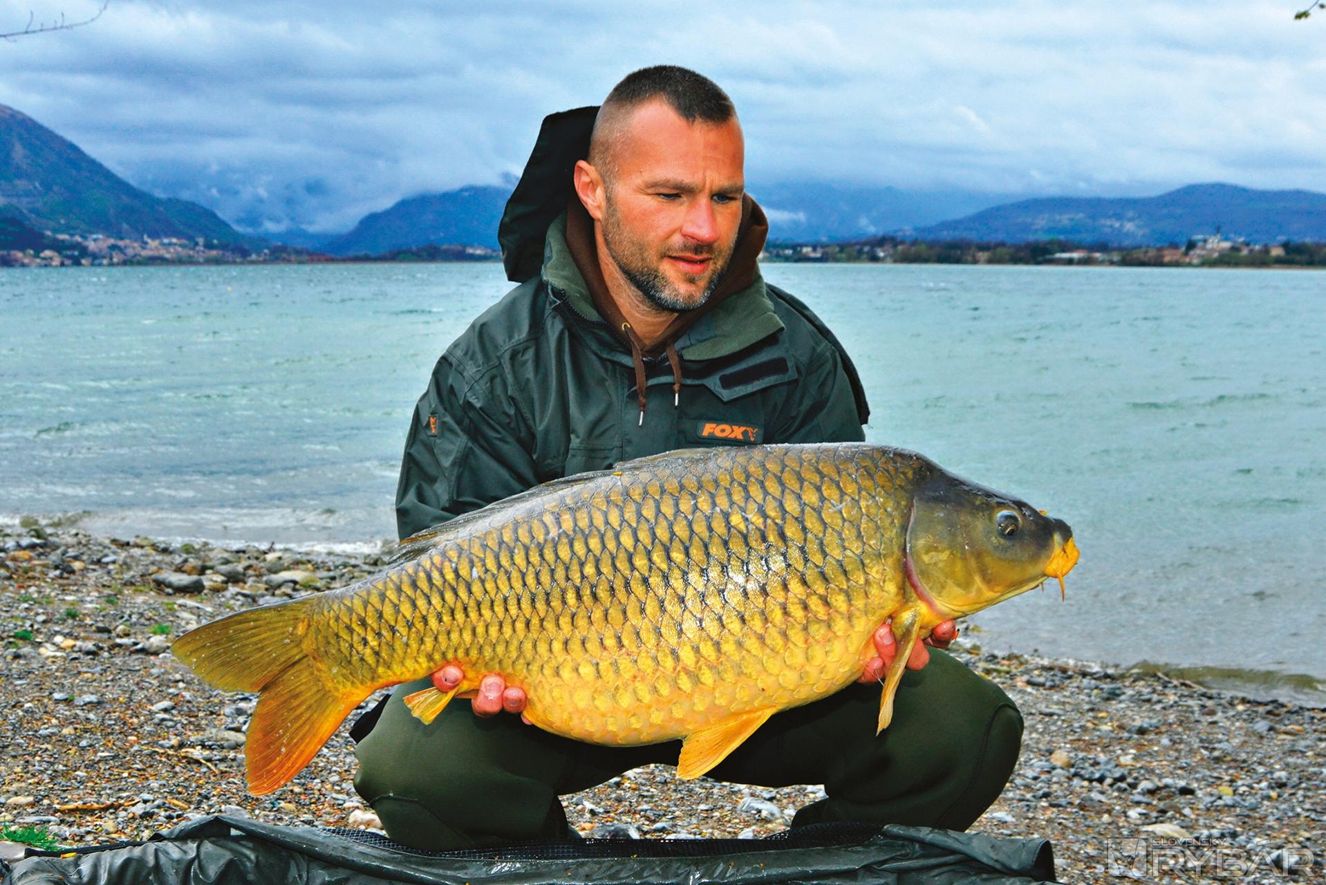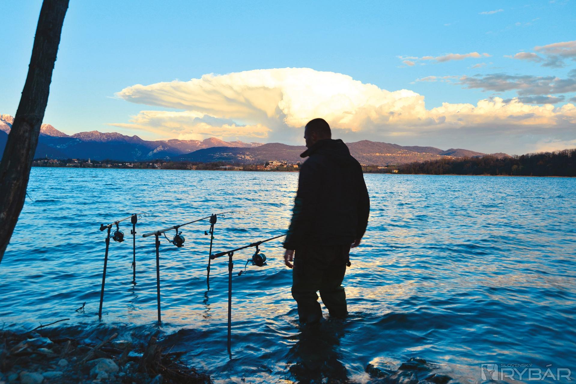 Teraz to nebol práve kapor z tých väčších, ale bol to prvý kapor po šiestich dňoch a po množstve jalcov. Prvého kapra uloveného na výprave vždy fotím, ale tohto hneď púšťam. Nechcelo sa mi rozťahovať fototechniku v jemnom daždi. Potešilo ma, že konečne zabral kapor a veril som, že konečne priplávali do mojej oblasti. Ak sa tak stane, ale to zistím až v nasledujúcich hodinách, tak urobím všetko preto, aby som túto situáciu zužitkoval a natiahol čo najdlhšie. Tesne pred obedom sa ozýva moje RX‑ko. Tentoraz skúšam rybu zdolať z brehu, čo sa mi aj úspešne podarilo. Bol to o niečo väčší kapor ako ten ranný. Jeho hmotnosť bola necelých 15 kg. Celý deň lialo a už začala rapídne stúpať aj hladina jazera, čo tu nie je nič výnimočné. Počas výdatných dažďov dokáže jazero stúpnuť počas jedného dňa aj o pol metra. Odkedy začalo pršať sa voda ochladila o 2 stupne, ale kaprom to asi prospievalo. Okolité vrchy sú čoraz viac zasnežené. Popoludní si vychutnávam zdolávanie krásneho lysca z brehu. Z brehu zvyknem zdolávať len obvykle pri vhodných podmienkach a jednoduchom teréne vo vode. Viem, že takto viac riskujem stratu ryby, ale teraz je predo mnou len hlbočina a k tomu fúka silný vietor, ktorý rybu fúka na mňa. Vyfarbený lysec nakoniec šťastne končí v mojom podberáku a jeho hmotnosť sa prehupla cez 18 kg. Teraz som už úplne presvedčený, že kapry objavili moje nástrahy a určitý čas sa zdržia na mojom mieste. Vytlačili aj skupinu jalcov, veď od rána sa neobjavil ani jeden a odvtedy sa neukazujú ani na hladine. So západom slnka sa utíšil aj vietor. Vtom sa ozval hlásič, swinger spadol, v zapätí sa dvihol a spadol.