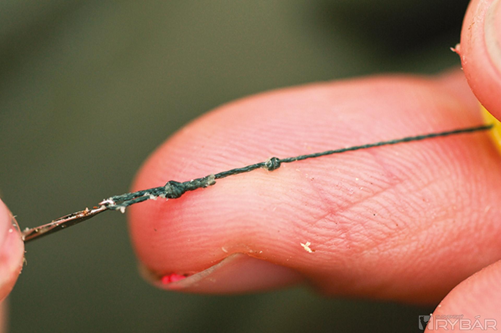 8. Prevlečte šnúrku cez očko háčika a poriadne dotiahnite.