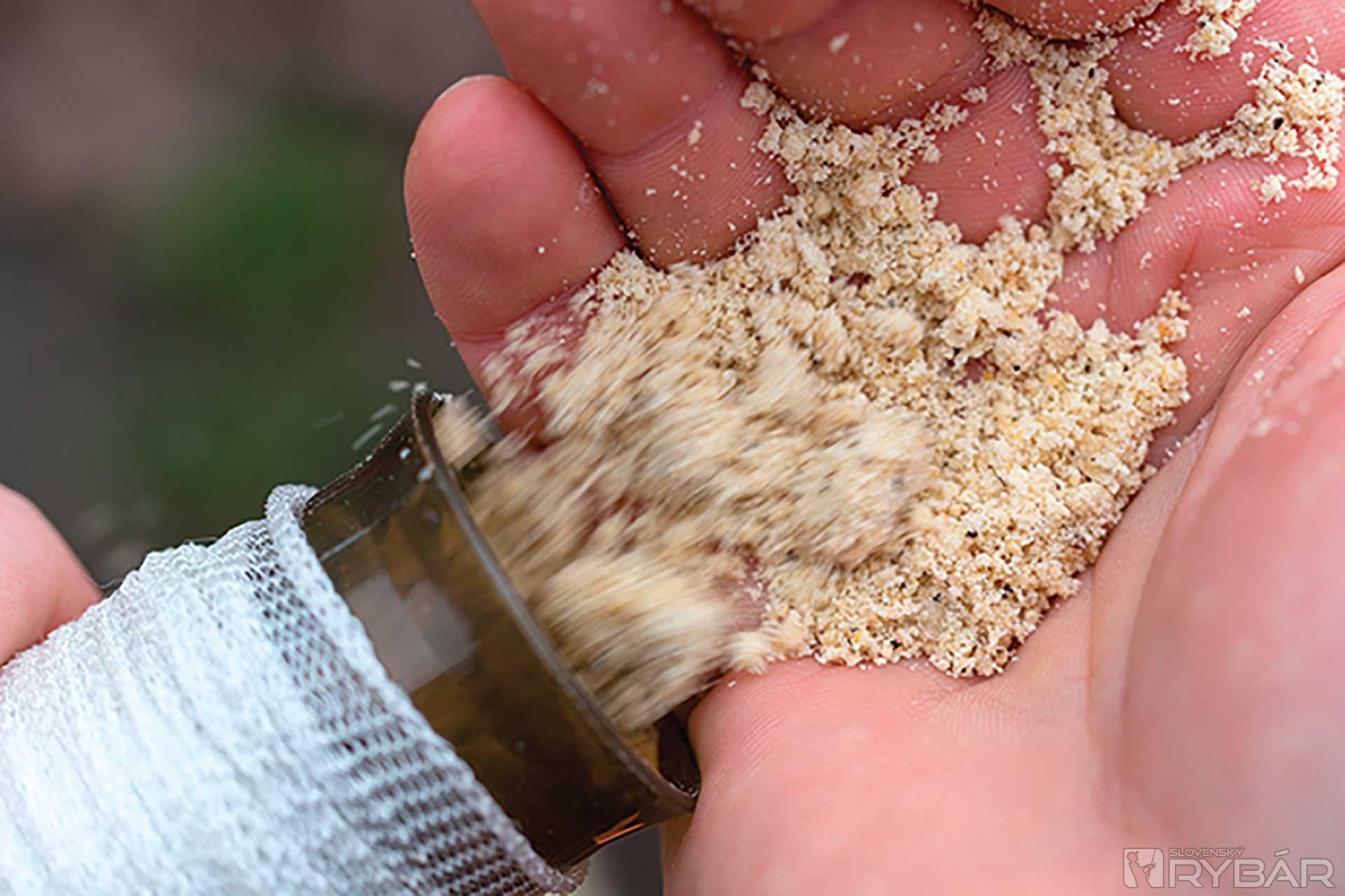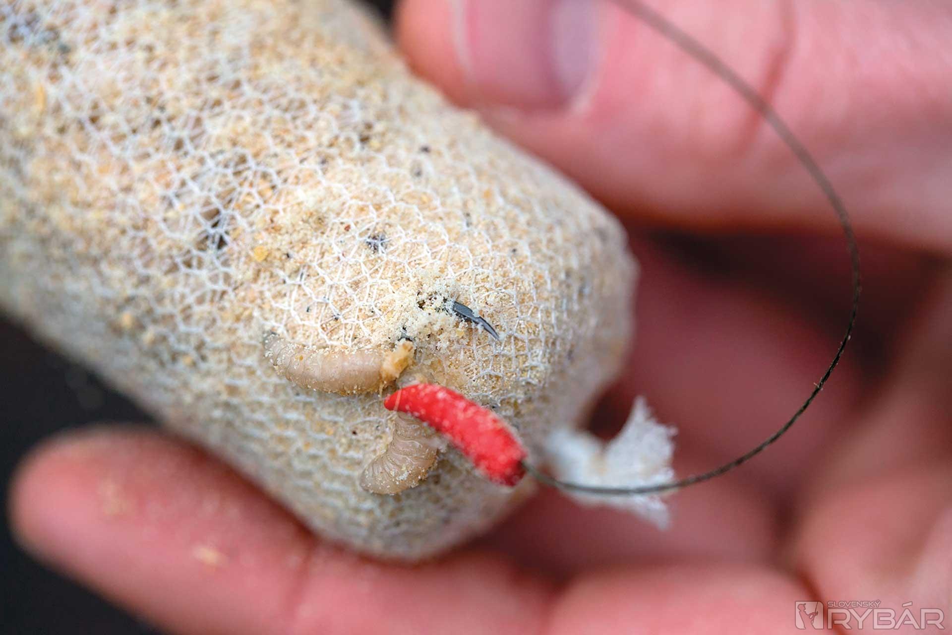 Rád ponúkam červy čo najprirodzenejšie bez pridávania nejakých strašných príchutí. Ale vždy pridávam do pančuchy nejaký prášok. Ako som už spomenul, háčik zapichnem do vrecúška. V minulosti sa stávalo, že som háčikom prepichol nejakého červa. Dokážete si predstaviť ako je na hrote zapichnutý červ, ktorý nič nerobí? Aby som tomu predišiel, pridávam veľmi sypký stickmix, alebo najemno nadrvené boilies. Umiestňujem ho do tej časti, kde potom zapichnem háčik.