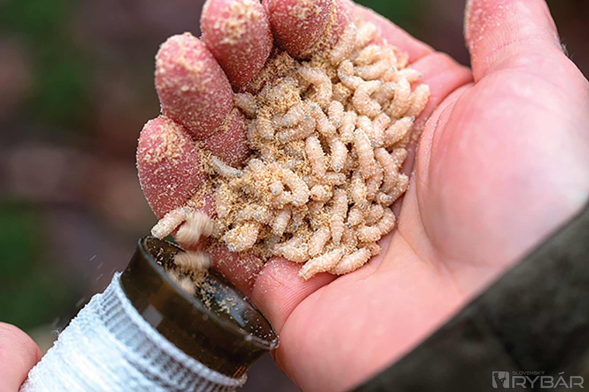4. Potom naplňte poriadnou dávkou kostných červov.